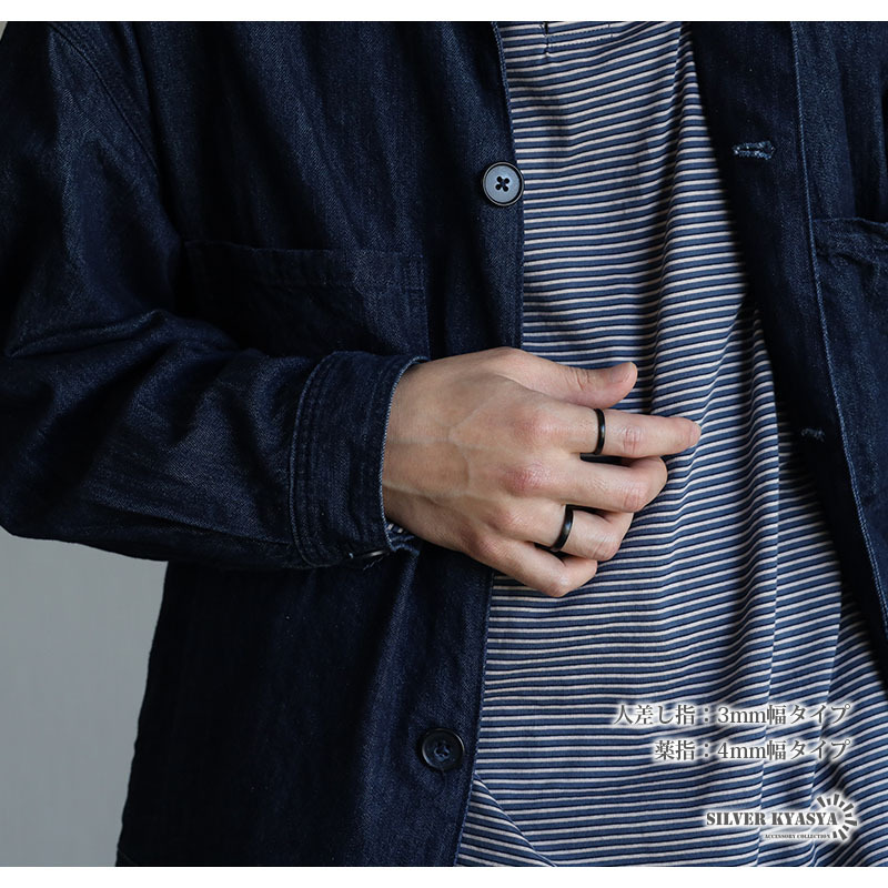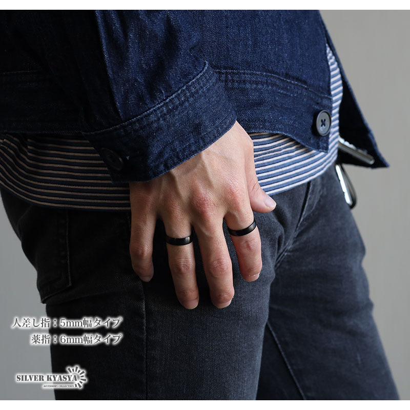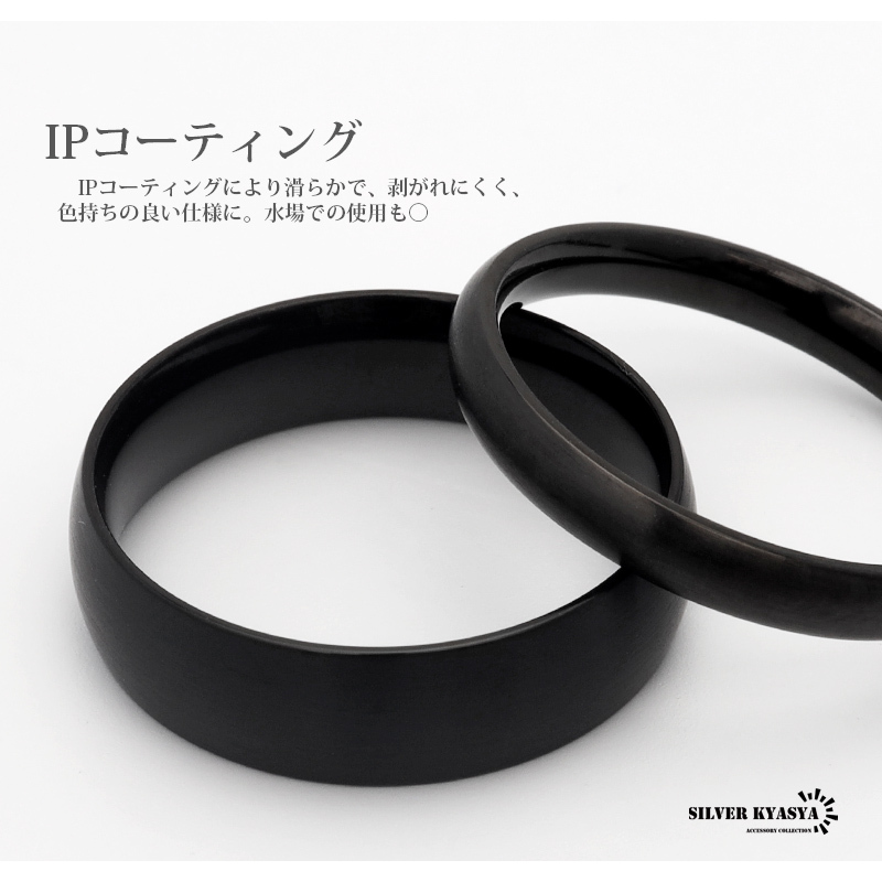 ブラックカラーで統一した装飾のない甲丸タイプのリング。つや消し加工で落ち着いた黒色が指もとのアクセントにぴったり。重ね付けにもおすすめのアイテムです。