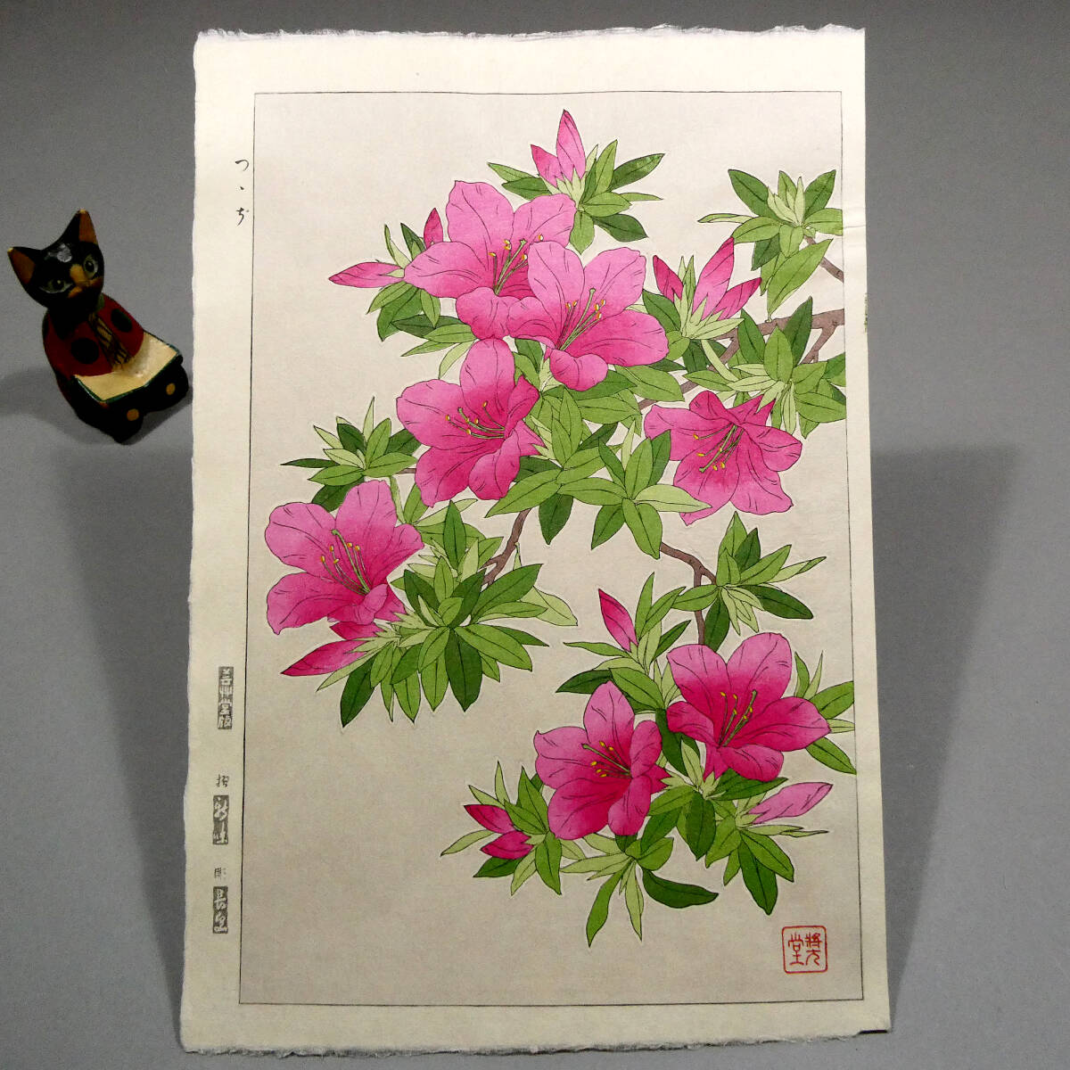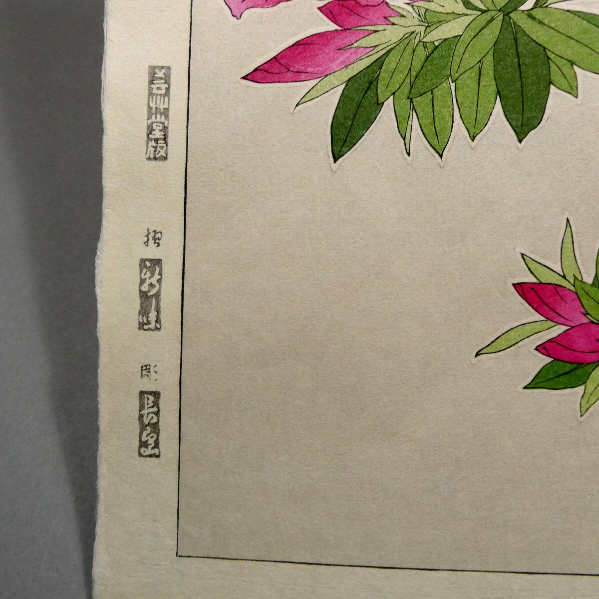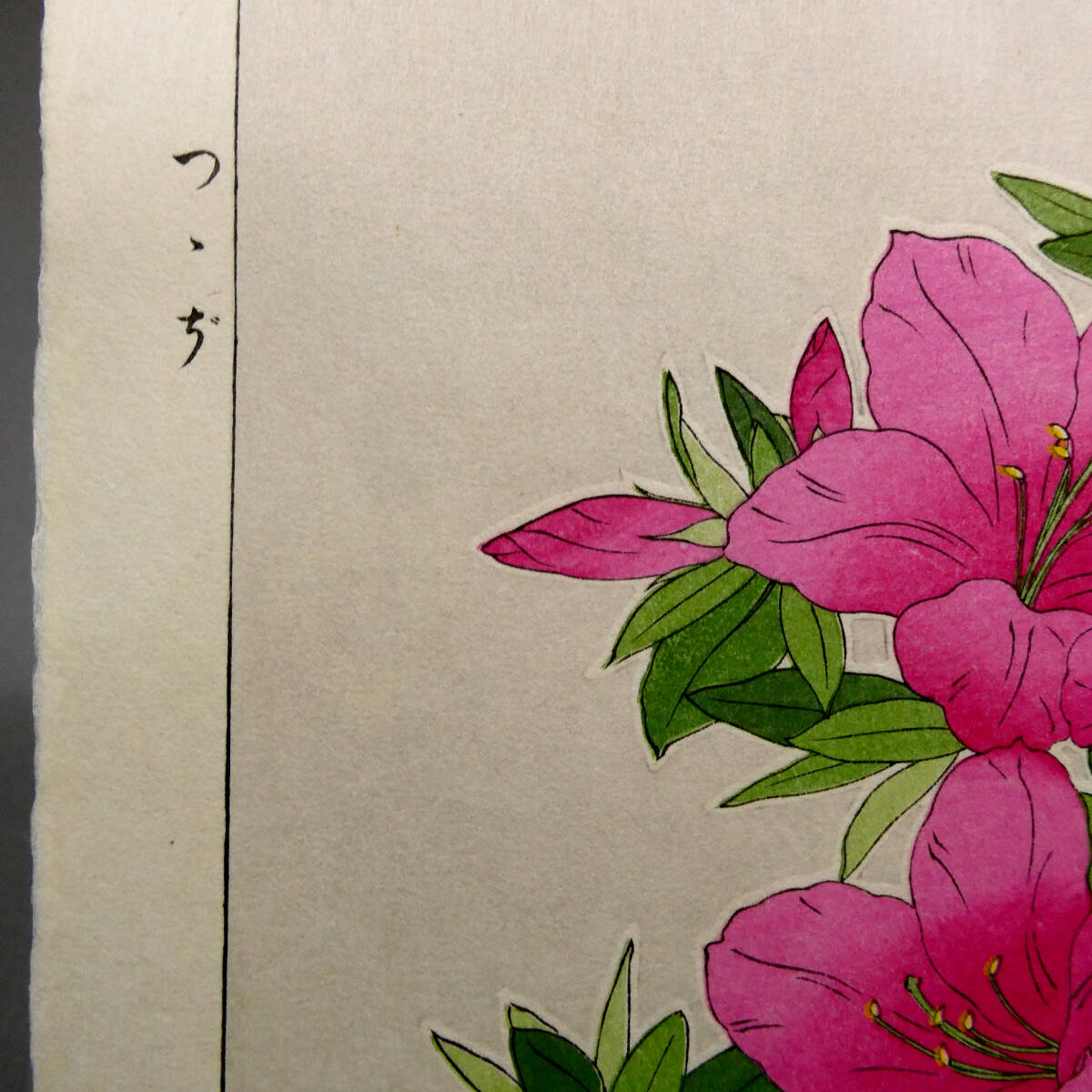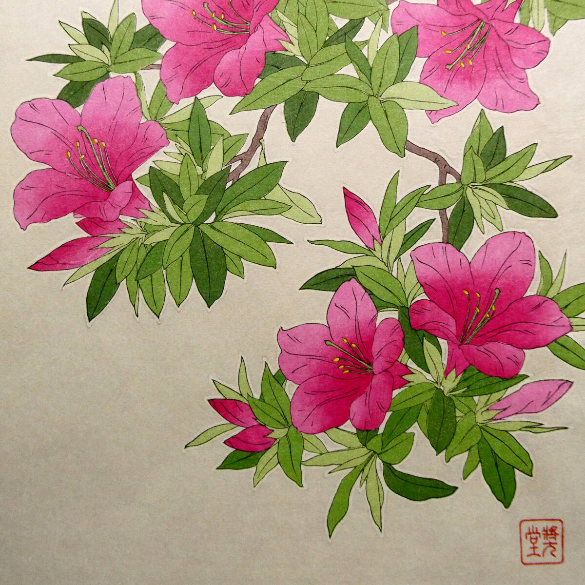 ■ 河原崎奨堂 木版画作品 芸艸堂版 「つつぢ」 摺・新味 彫・長島 友禅模様の研究家 華やかな日本画表現 ■