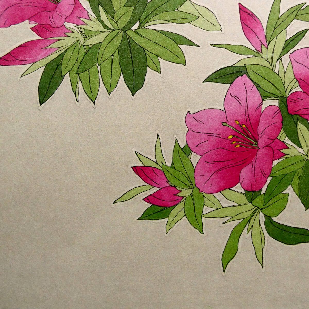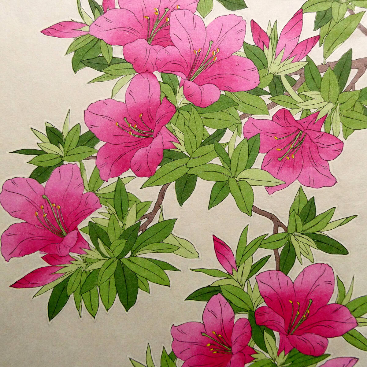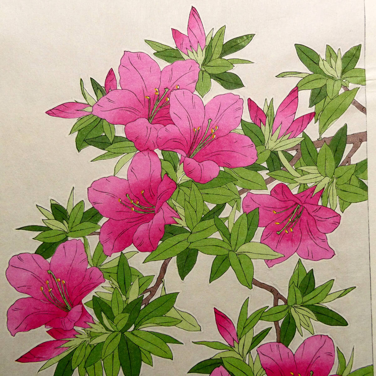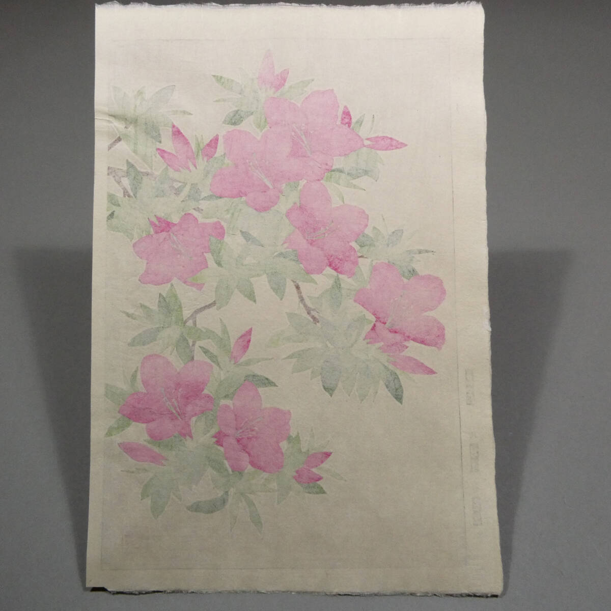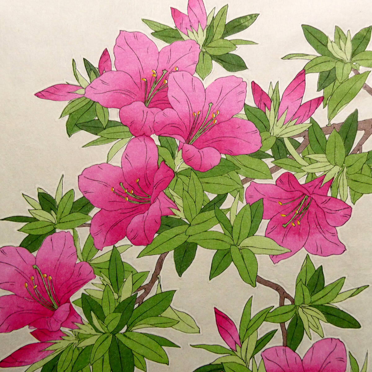 ■ 河原崎奨堂 木版画作品 芸艸堂版 「つつぢ」 摺・新味 彫・長島 友禅模様の研究家 華やかな日本画表現 ■