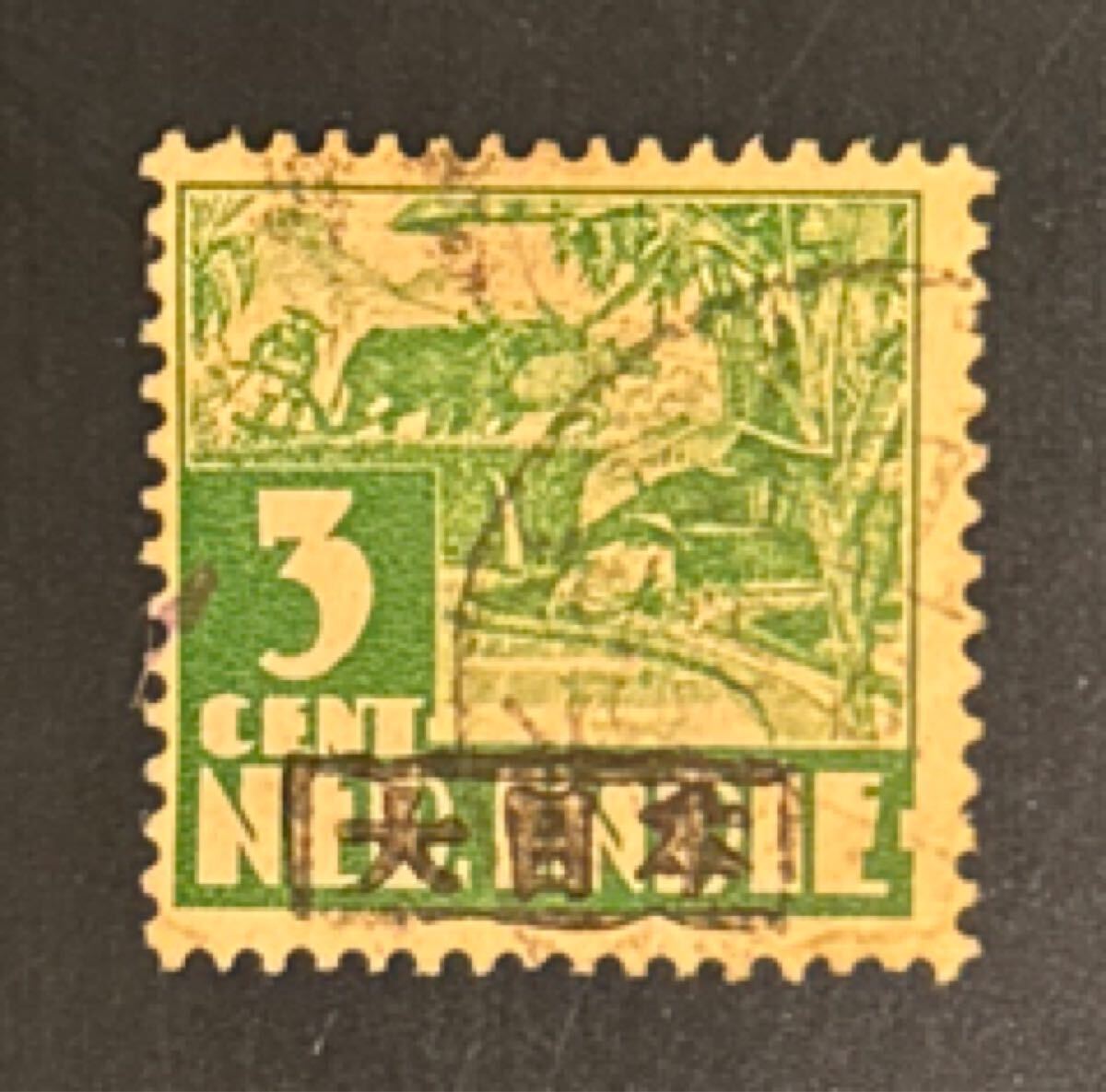 南方占領地 スマトラ 東海岸州 大日本枠付黒加刷 農耕切手 [透かしあり] 3 cent 使用済