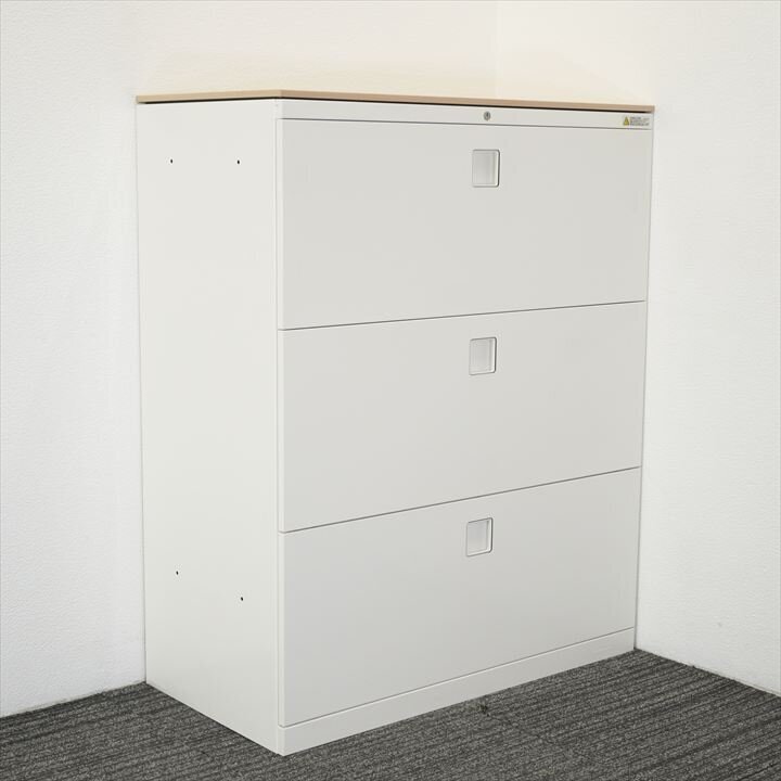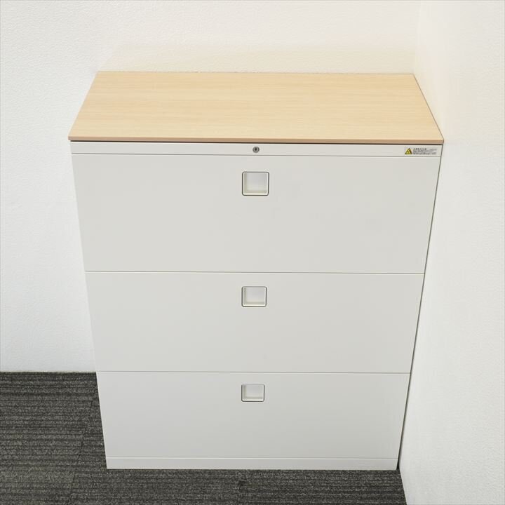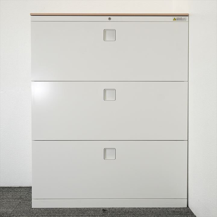 オカムラ製レクトラインシリーズの3段ラテラル書庫です。