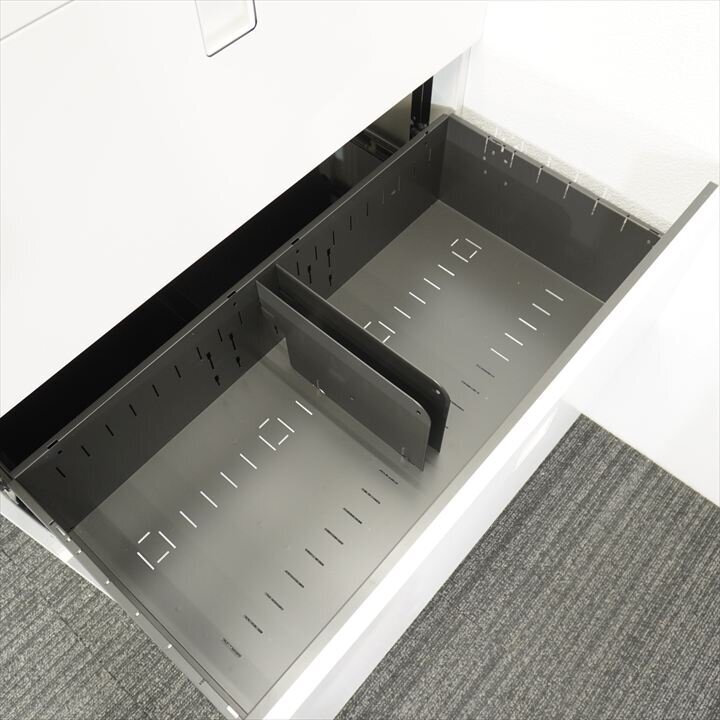 スタンダードな引出タイプのキャビネットになっており、引出を開けた際に収納書類の背表紙が見える為、書類管理がとても行いやすく、さらにマルチアクセスハンドルを搭載しておりますので、上下左右4方向から操作が可能ですので、ユーザーの状況に応じた開放が可能です。