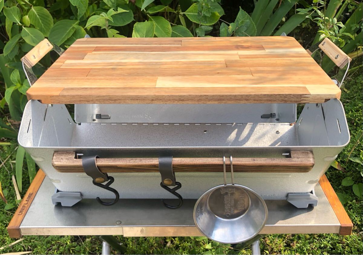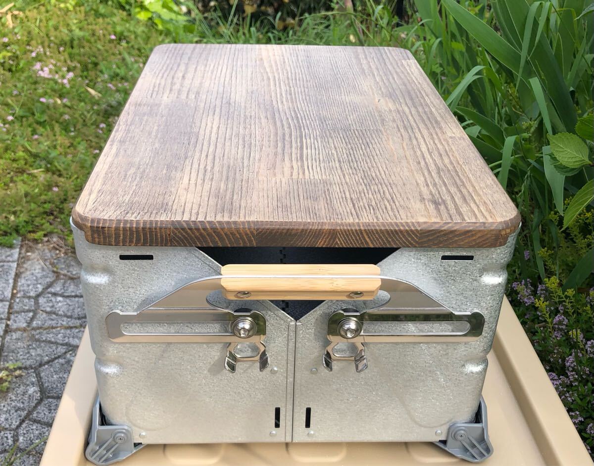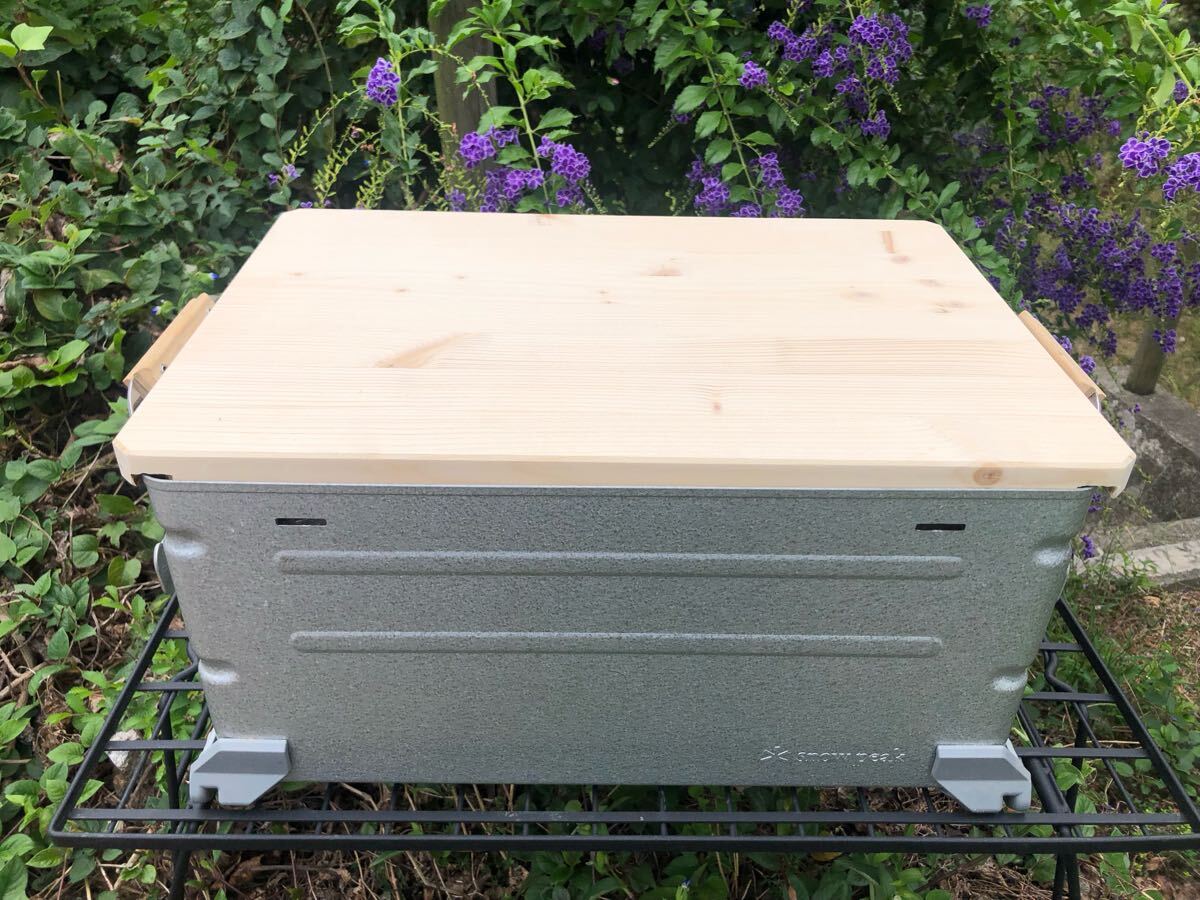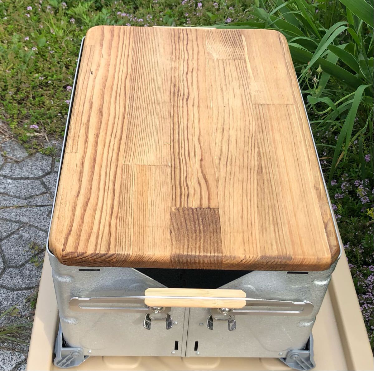 スノーピークのシェルフコンテナ25用のハンドメイド天板です。
