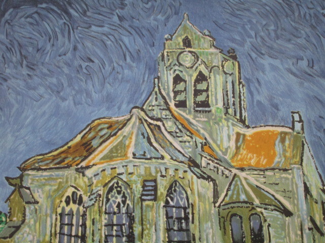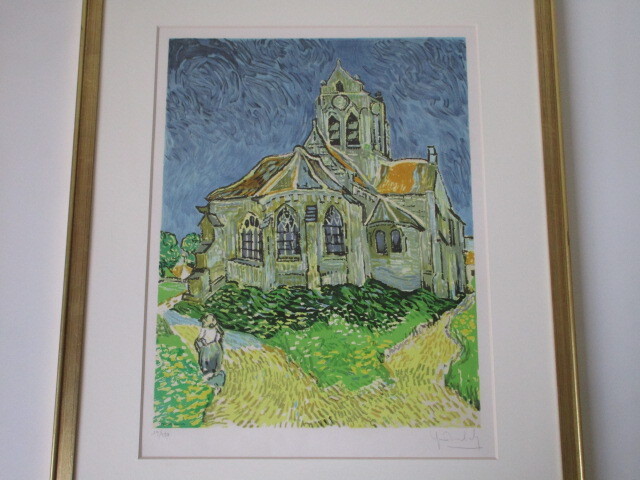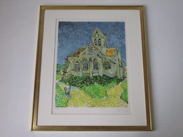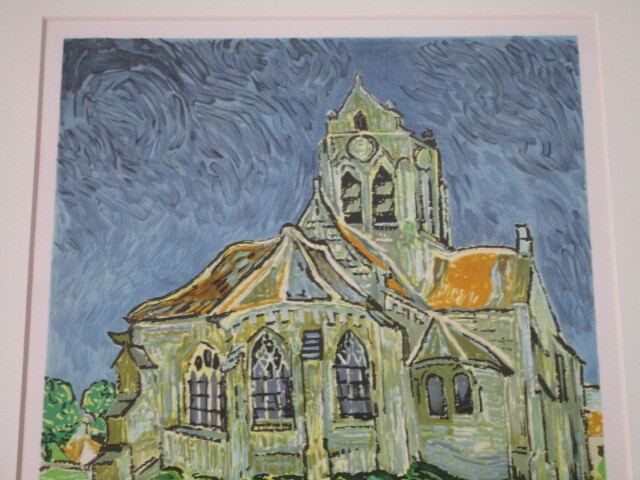 真作保証 フィンセント・ファン・ゴッホ「 オーヴェルの教会 」ムルロー版 リトグラフ 版画 限定 480部 エディション 刷師サイン有 額装品 です。