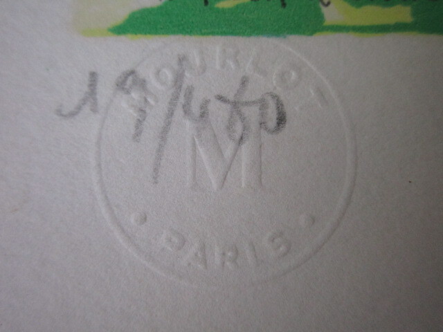 商品は、ムルロー版のリトグラフで、刷師(Y.Melcher)の鉛筆サインである事を“保証”致します。