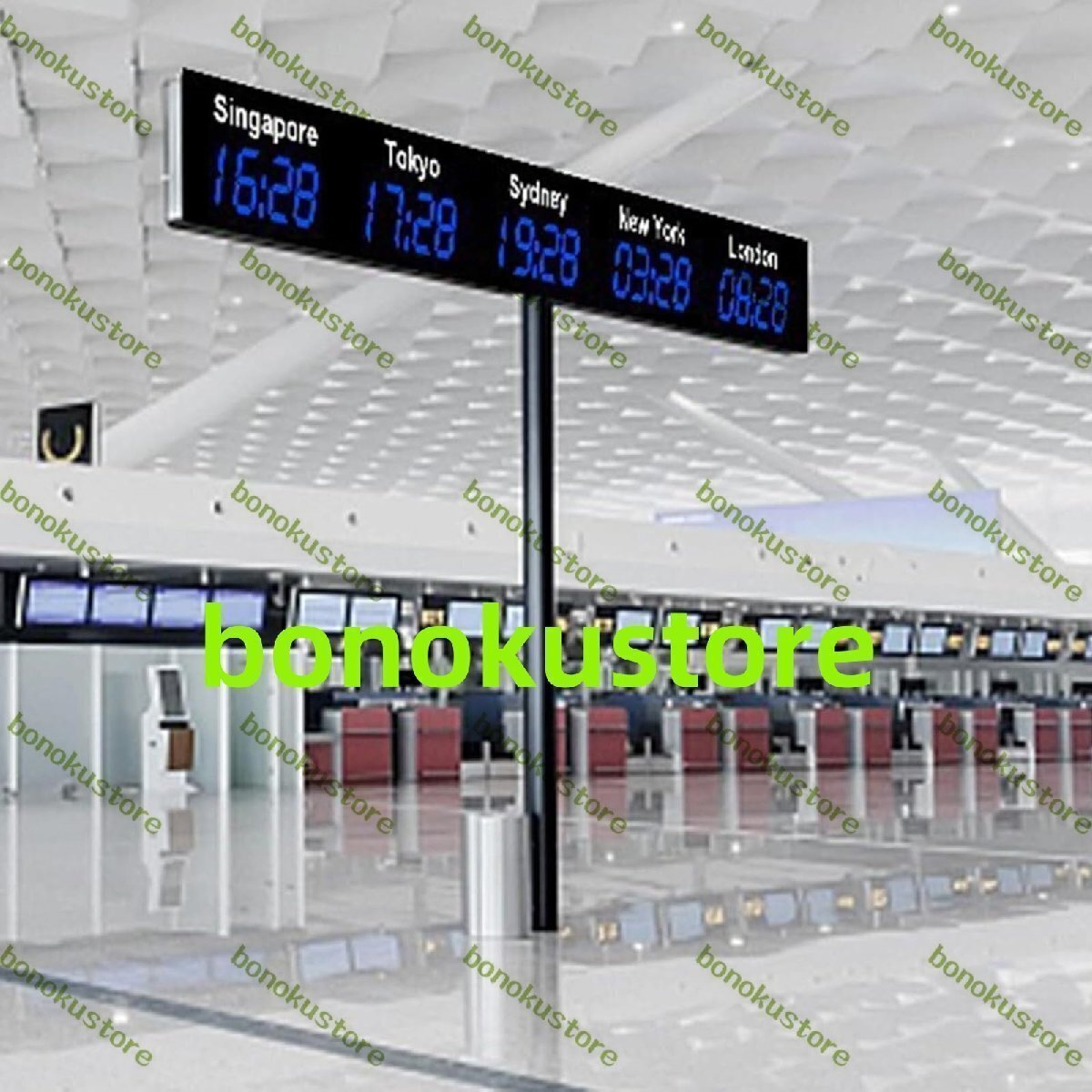 世界時計 LED デジタル マルチタイムゾーン時計、3~8都市世界時計、WORLD TIME、大型、5段階明るさ調整、自動校正、サマータイム機能、ホテル、多国籍企業向け 青色表示 3都市