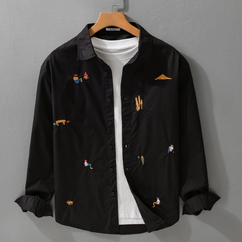 長袖シャツ シャツ 刺繍 シャツジャケット 新品★メンズ トップス 春服秋服 カジュアルシャツ コットン【YY8020】黒 3XL