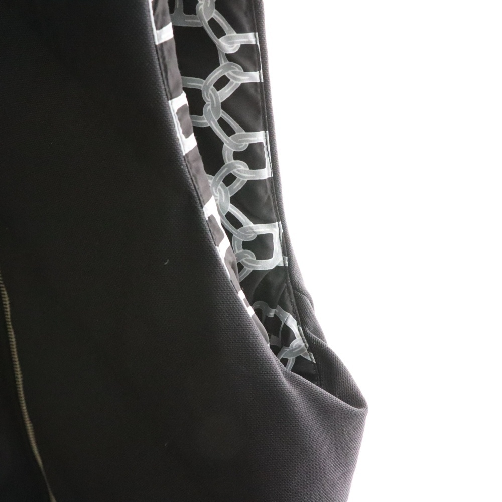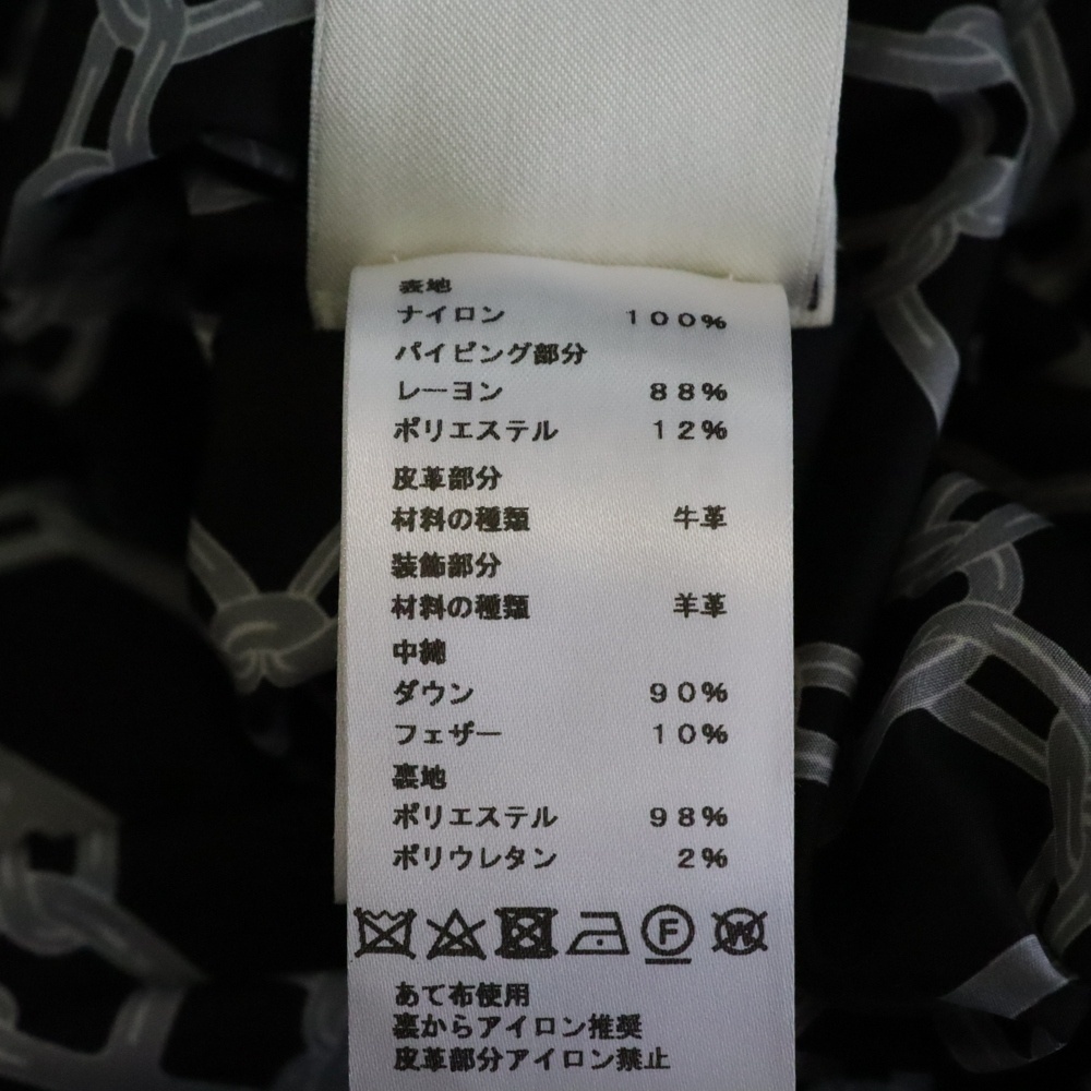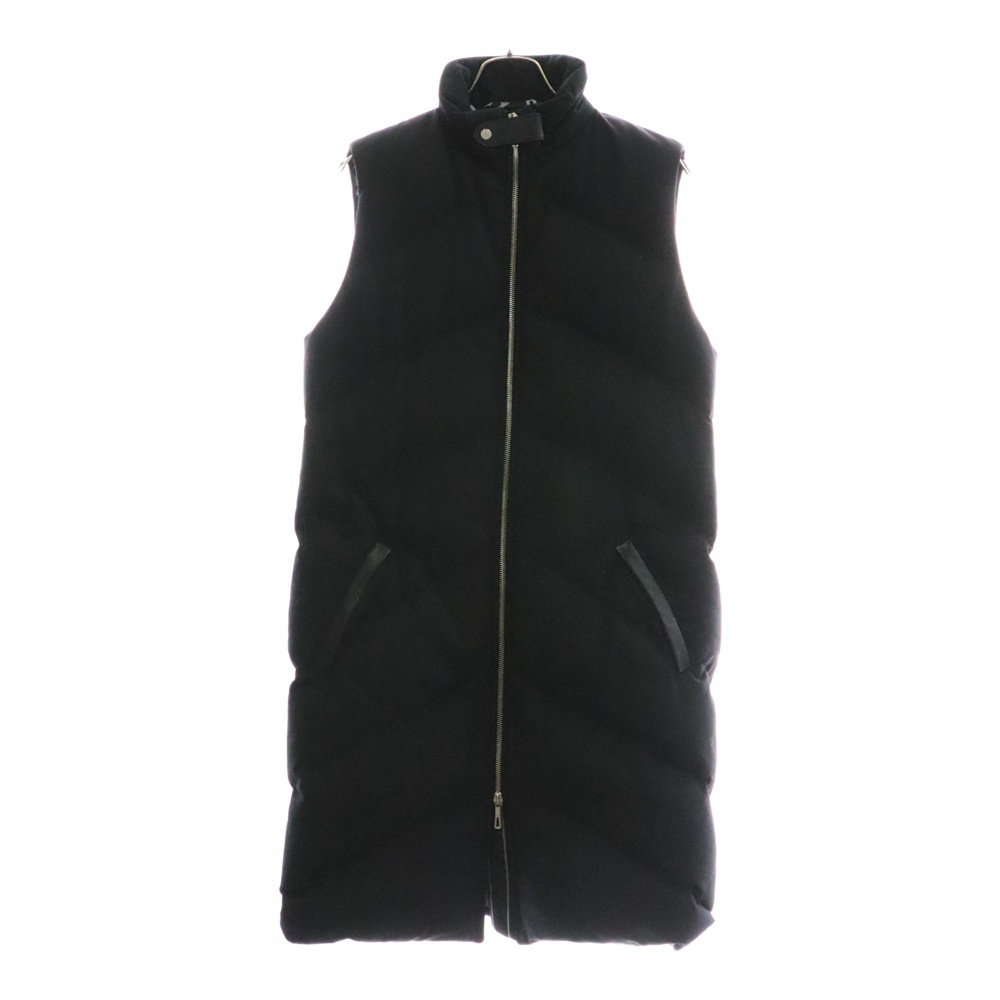 品名セリエ スナップボタン 裏地シェーヌダンクル総柄プリント レザーベルト ジップアップ ダウン ロング ベスト ジレ ブラック レディース