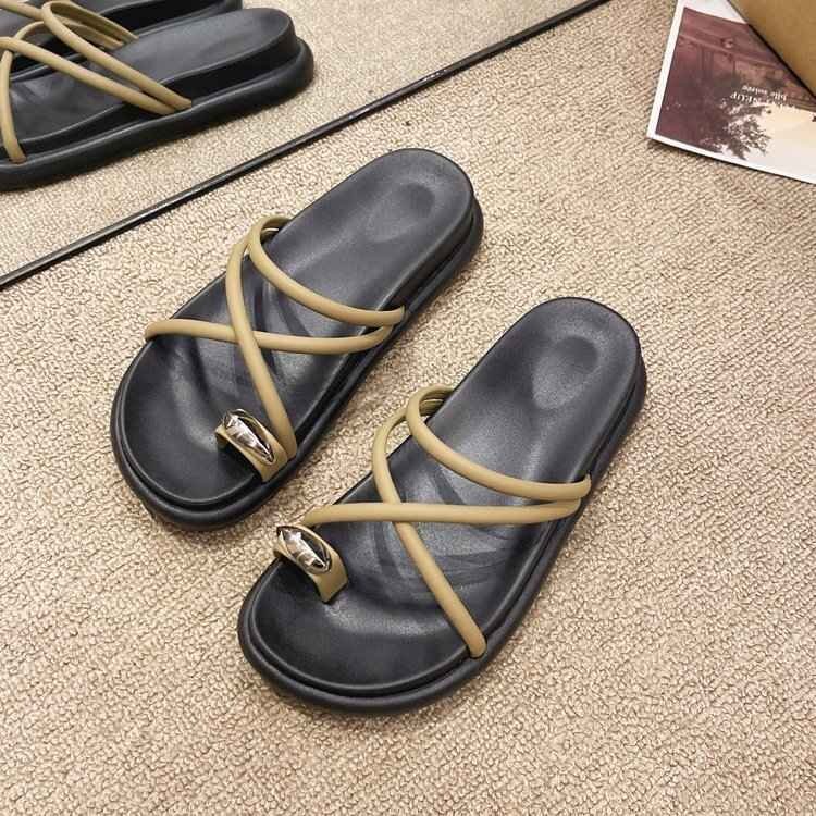 厚底サンダル スリッパ 春夏 レディースファッション オシャレ INS 25.0cm カーキ