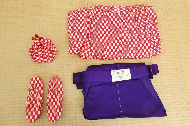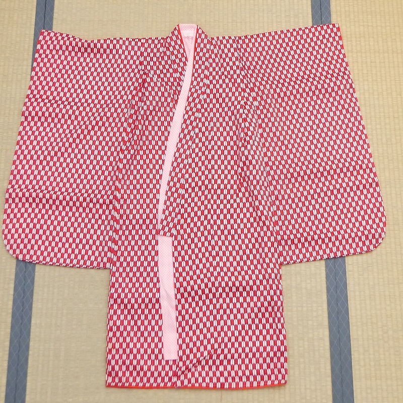 ◆袴セット○5点/女児用/着物(四つ身)・襦袢・袴・巾着・草履/矢絣/リメイク・材料等に/新品/仕立上り/化繊/適応身長:118~122cmくらい/(梱包サイズ:80)◆* コメント・全体的に薄汚れ・薄い色ヤケがあり、一部シミ・汚れ・変色があります。 ・新品ですが、経年保存されていたお品ですので、ご理解のある方のご入札をお願い致します。 ・シミ、ヤケ等の難がある為、リメイク・材料・素材用としてご入札ください。 ・ ・ * 品質・サイズ -- 着物サイズ目安 -- ・着物:身丈・約107cm、袖丈・約76cm、裄・約48.5cm ※肩揚げされている状態での採寸になります。 ・袴:紐下丈・約70cm ・草履:長さ・約21cm ・※一部商品のみのお取引はお断り致しております。入札前・落札後に一部の商品のみのお取引交渉や発送方法(メール便等利用)の交渉はご遠慮下さい。サイズ・発送詳細を必ずご確認のうえ、ご理解・ご納得のうえでのご入札をお願い致します。 ・梱包サイズ:80サイズ(発送詳細必読) * 程度 当社基準ランク・・・【6】