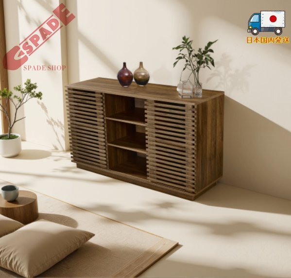 【国内発送】リビング収納キャビネット、サイドボード、収納キャビネット、大容量収納キャビネット ムービングドア