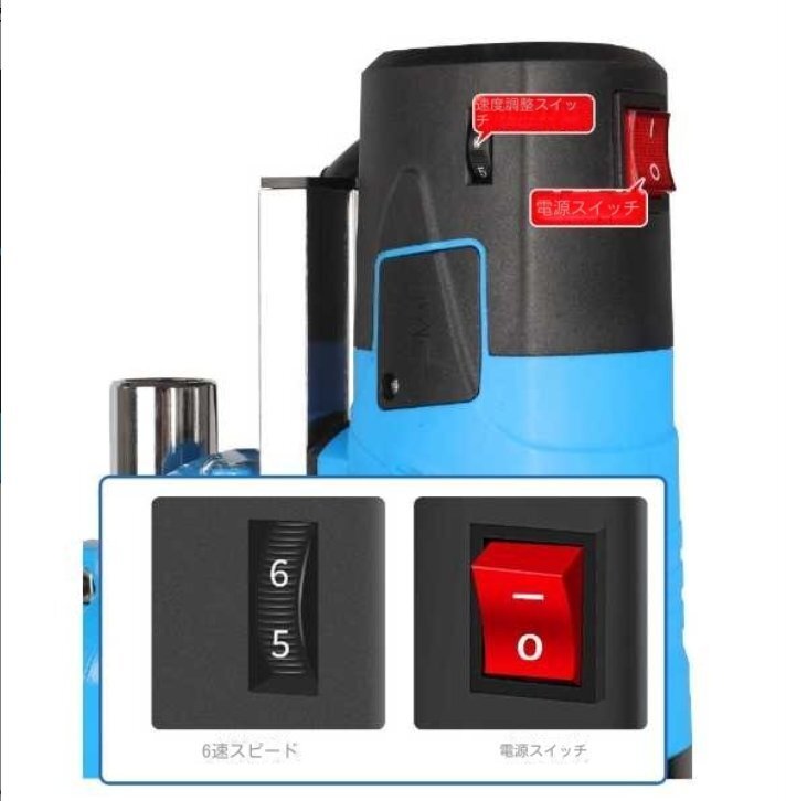 【商品仕様】電圧:100V、周波数50Hz 0~2800r/min-1(無負荷速度)、チャック能力1.5~13mm、回転速度切り替え:6段、コード:2.5m