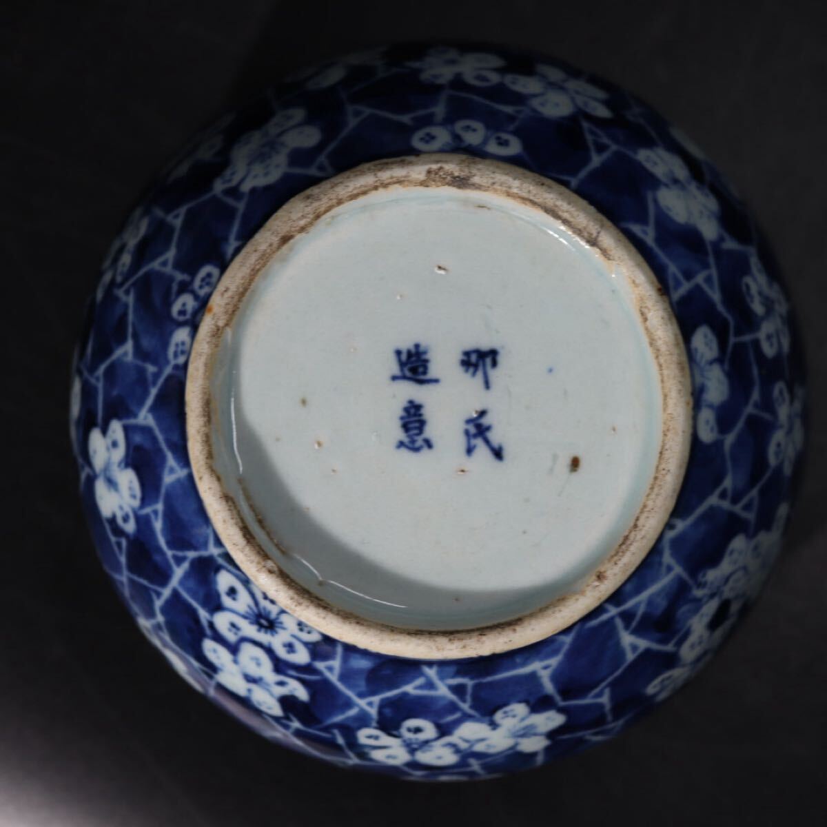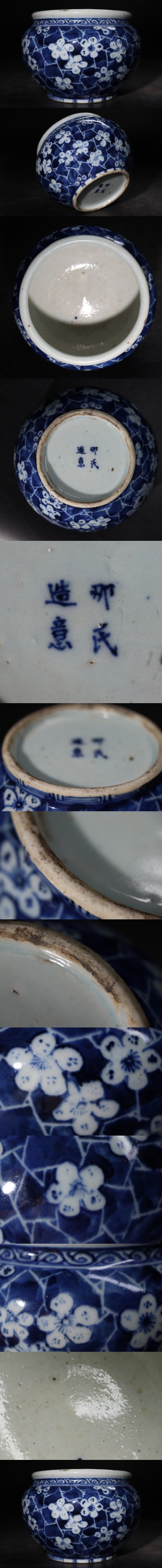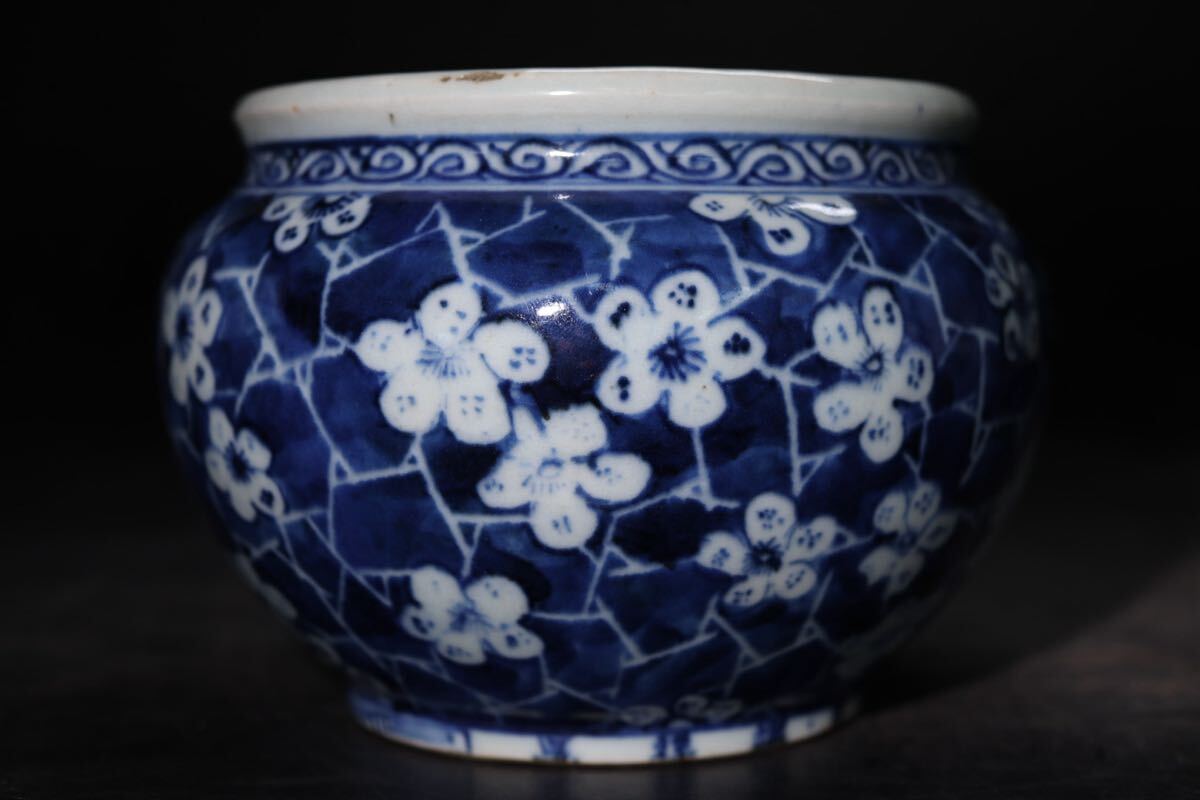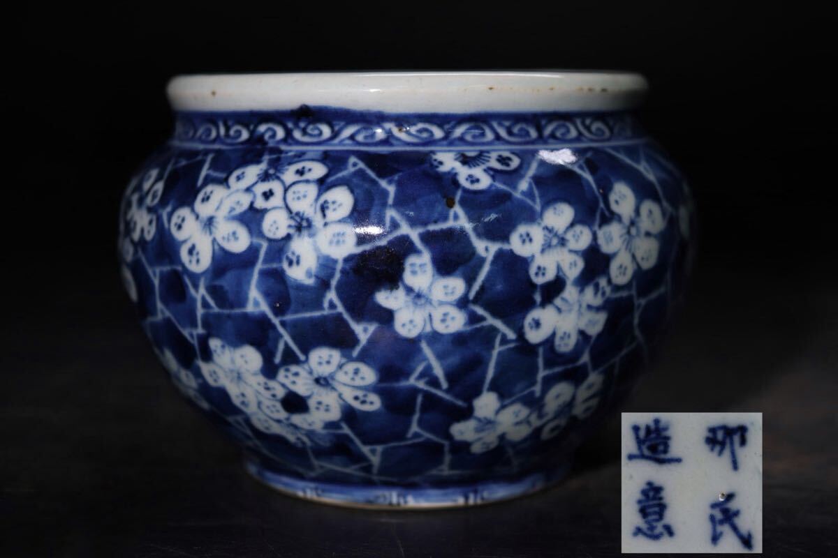 | 那氏造意 底款 染付 氷裂 梅花紋 小壺 / 中国美術 清 新渡 祥瑞 壺 花器 煎茶飾 .G2955 |