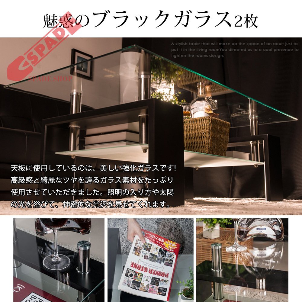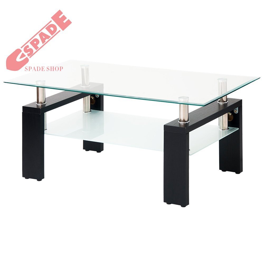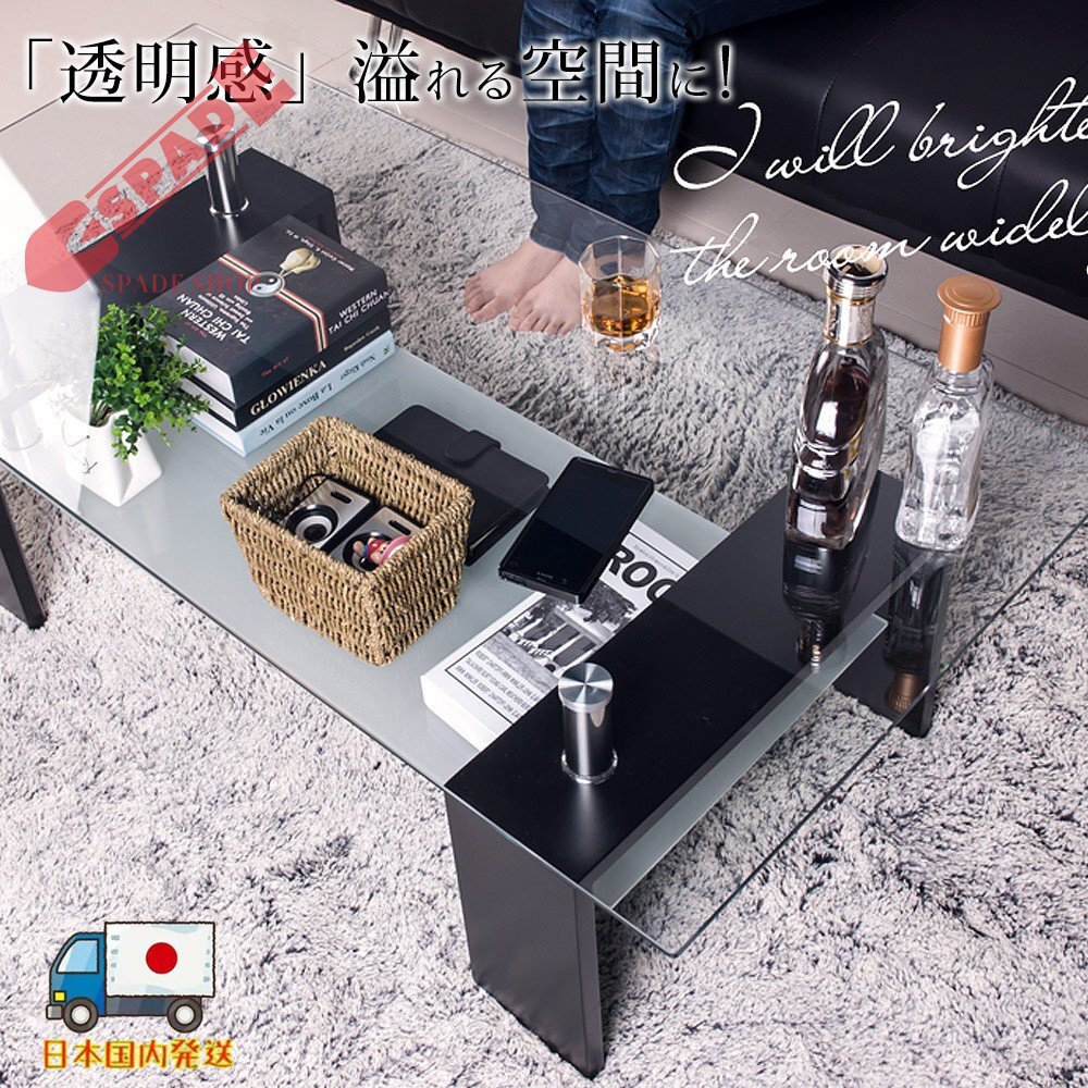【国内発送】ガラステーブル コーヒーテーブル 幅88cm 強化ガラス天板 収納付き 二段収納 おしゃれ リビング用テーブル 棚付き 木製脚