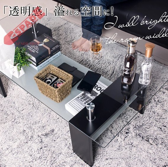 • 展示式収納の楽しさ:ガラス天板の下に、様々な小物や雑誌などを収納できる棚を設置しました。棚と天板の距離は絶妙で、物の取り出しがしやすく、生活のニーズに応えます。