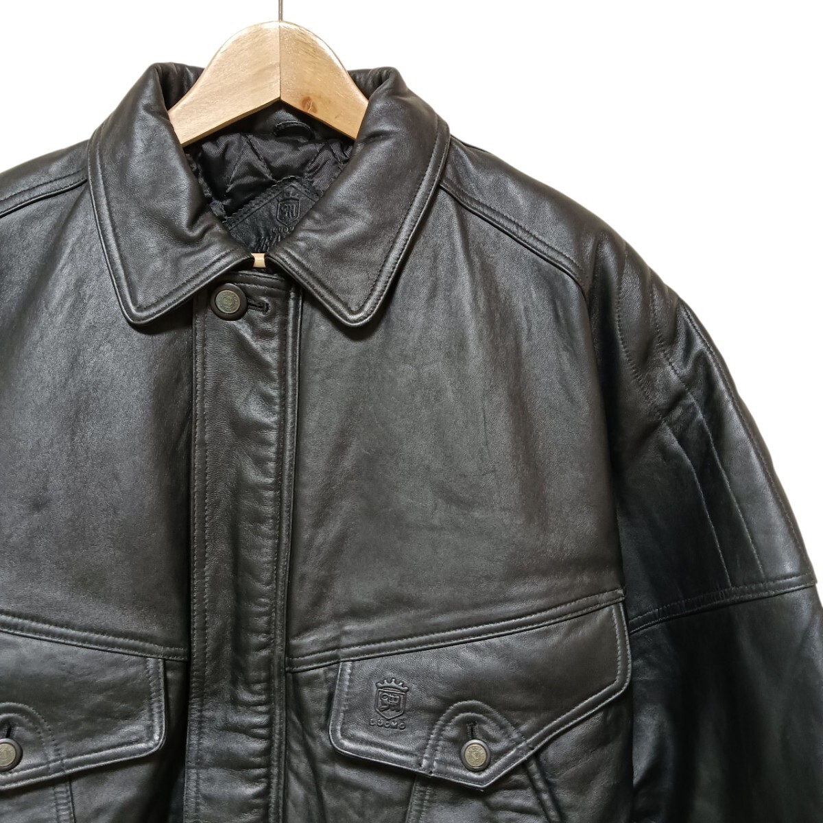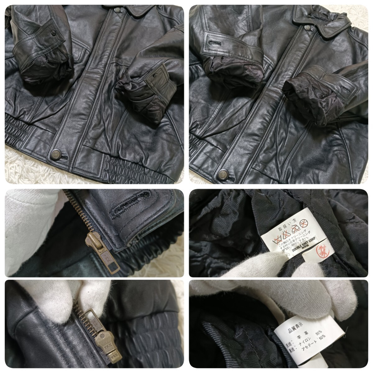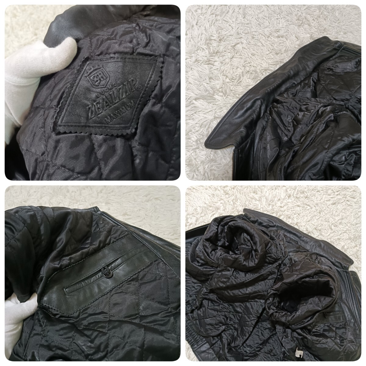 希少★90's VINTAGE OLD ZEALZIP A-2系 フライトジャケット 本革 羊革 ラムレザー シープスキン 裏地キルティング ナイロン アセテート アウター ブラック 黒系 ボックス系シルエット ユニセックス レディース メンズ サイズXL ヴィンテージ オールド ジールジップ 古着 USED