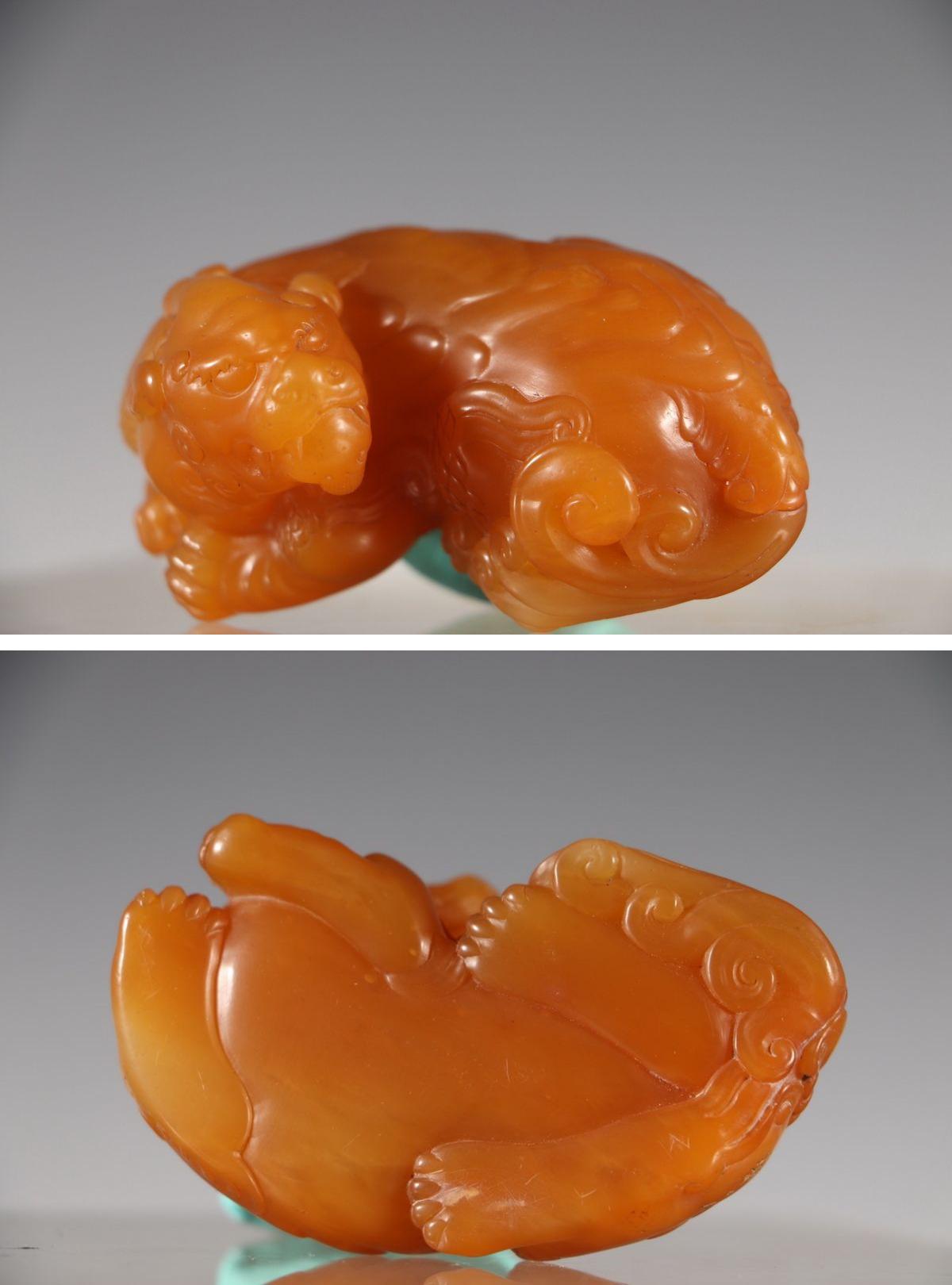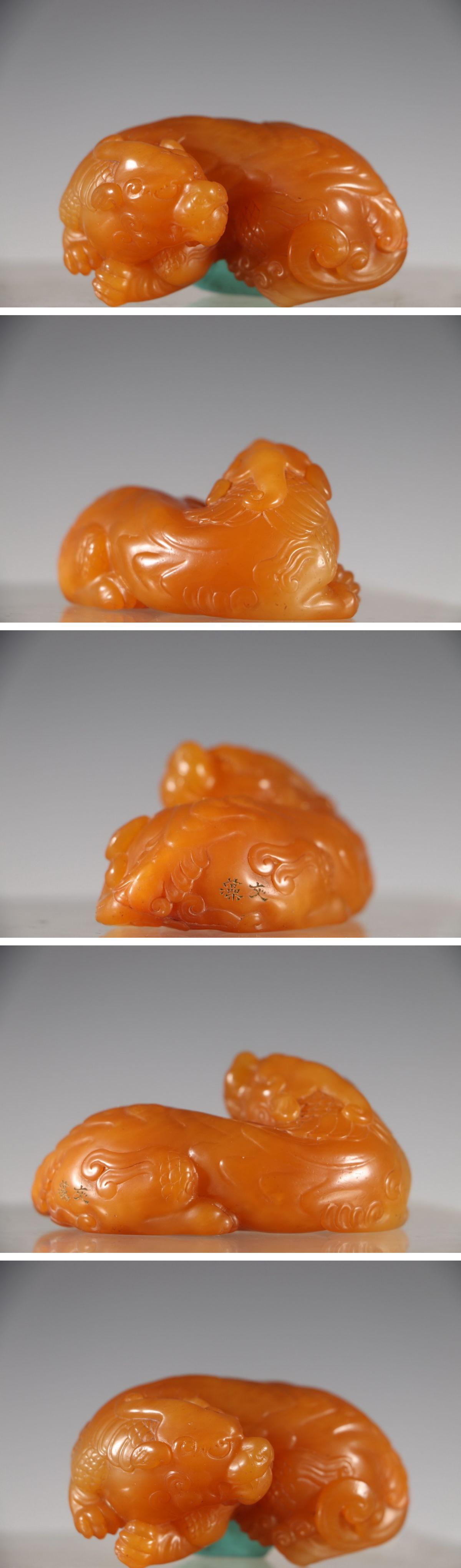 【清】某有名オークション購入 清時代 寿山田黄石 瑞獣紋根付 材質保証 古置物 古擺件 古美術 時代コレクション7L10-LF10