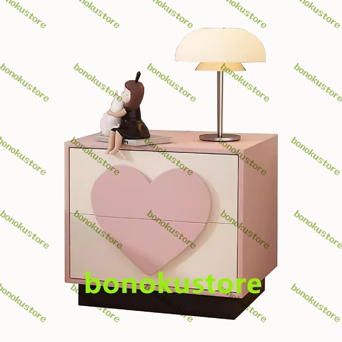 寝室とリビングルームに最適な、収納引き出し 2 つ付きのモダンなピンクのベッドサイド テーブル