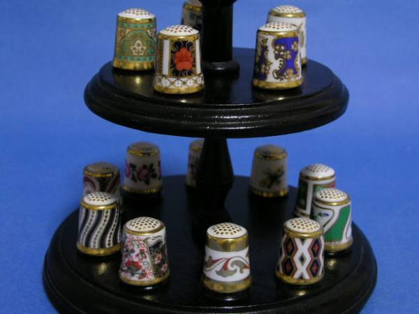 ◎ロイヤル クラウンダービー 代表的なデザインを集めた綺麗な飾り指貫15点全揃セット◎台付