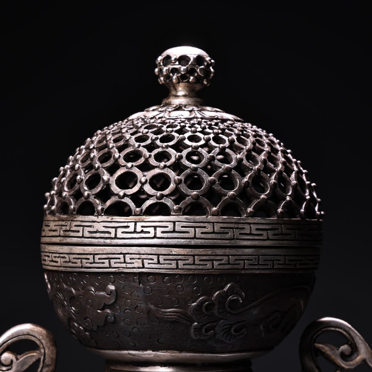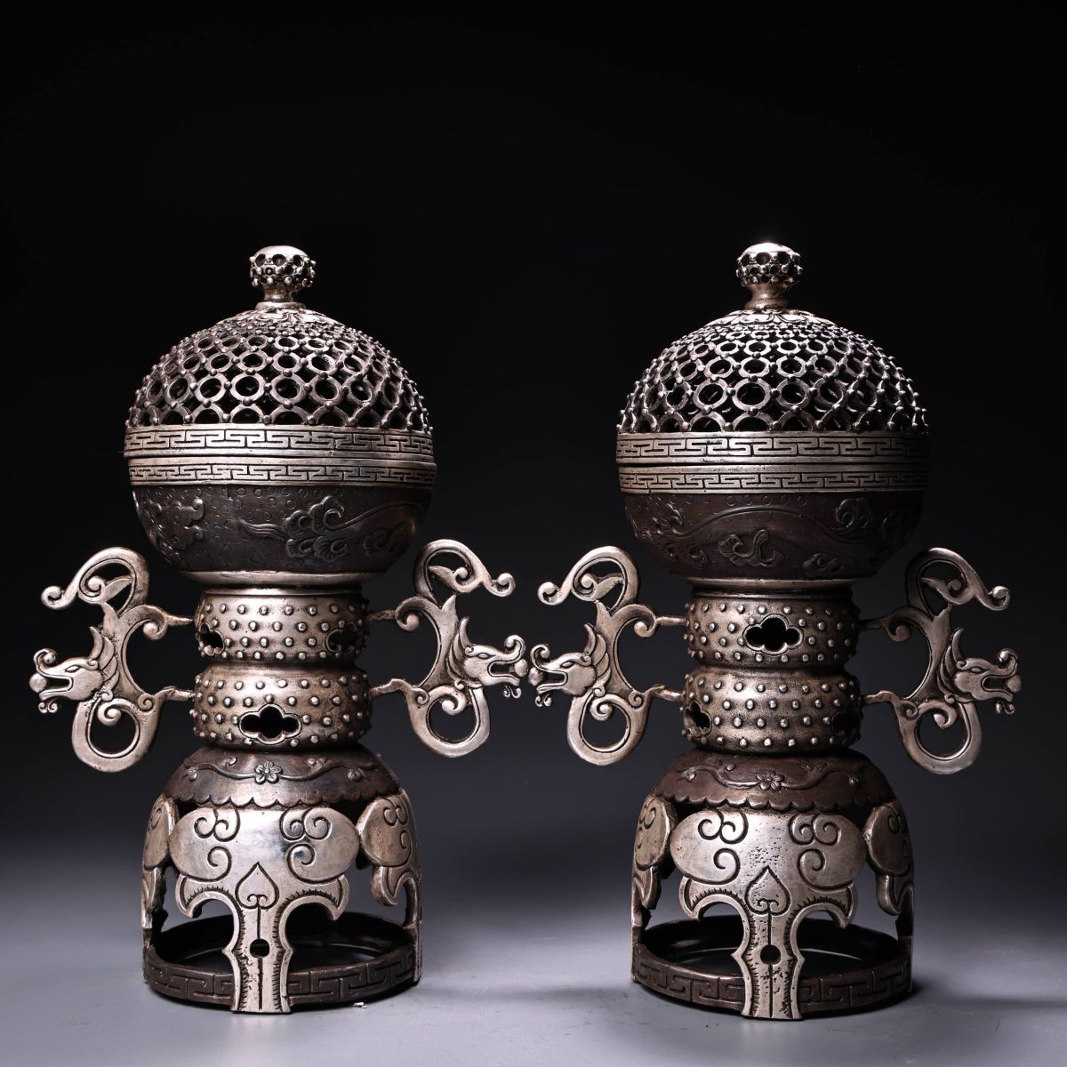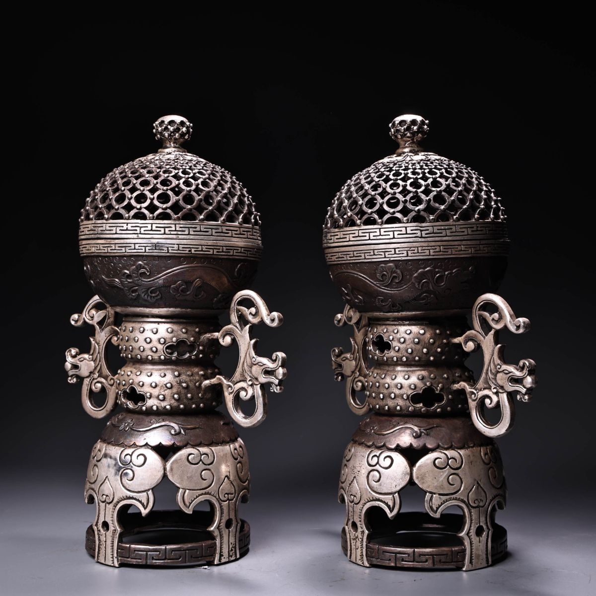 永し 清時代 古銅製 塗銀 熏爐 兩點 極細工 古銅彫 置物擺件 古美術品 時代物 古董品 収集 旧家蔵出 中国唐物 A12