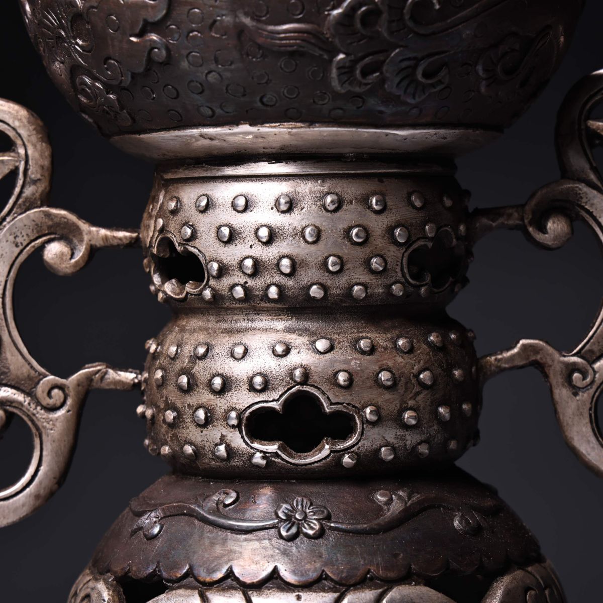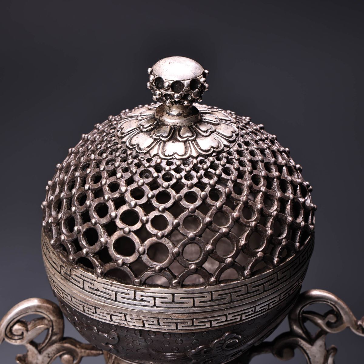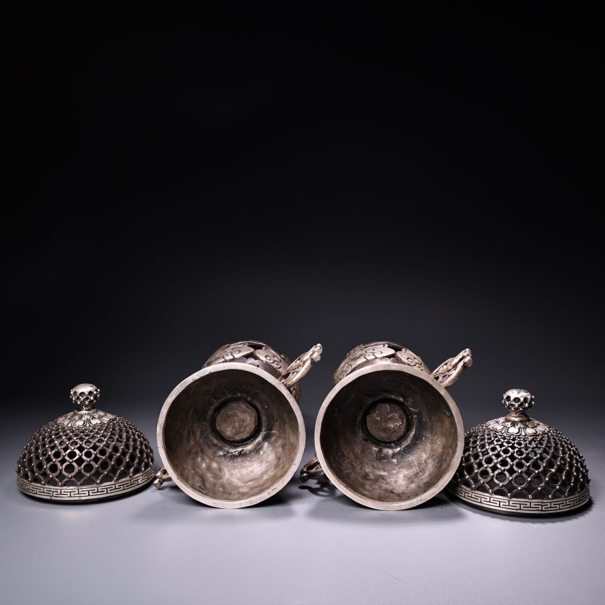 永し 清時代 古銅製 塗銀 熏爐 兩點 極細工 古銅彫 置物擺件 古美術品 時代物 古董品 収集 旧家蔵出 中国唐物 A12