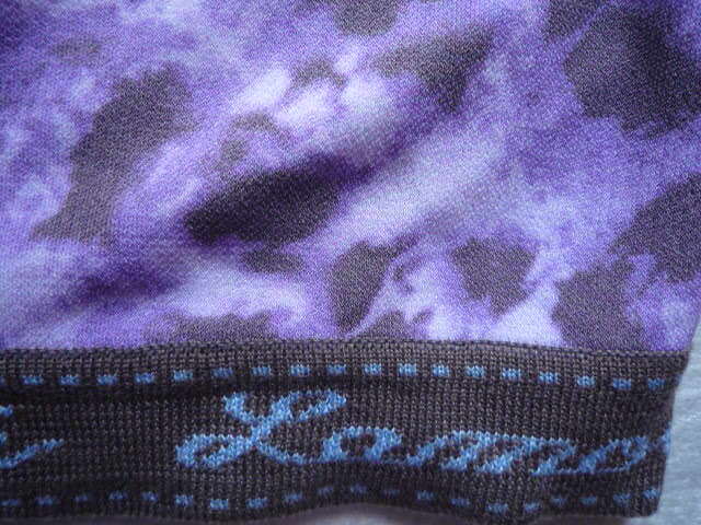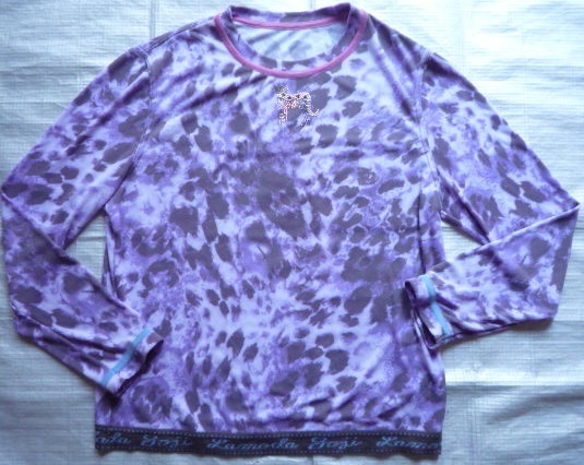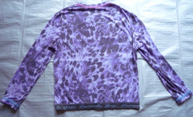 お色は、むらさき濃淡とこげ茶とむらさき混の大き目のヒョウ柄です。