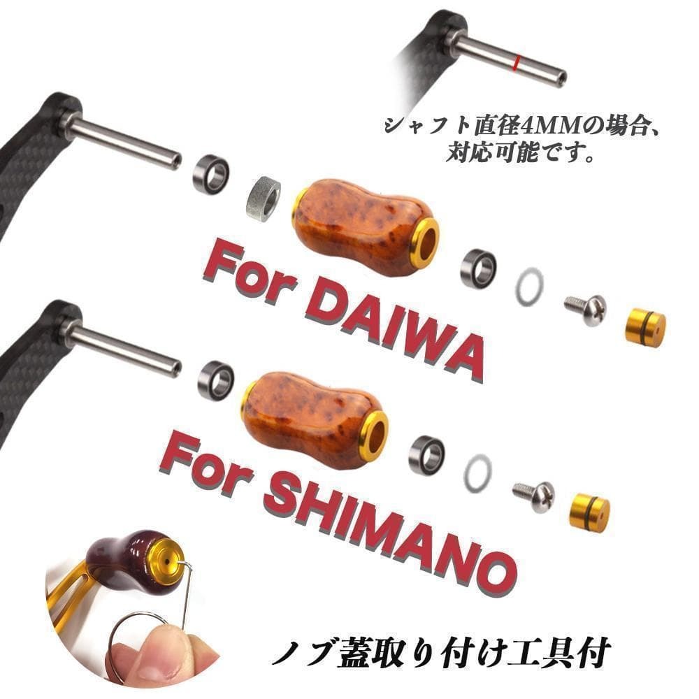 YU345 B銀色 木製ノブ パワー リール ハンドル ノブ シマノ Shimano ダイワ Daiwa 適用 ベイトリール ボール 交換用 ねじ付き 檀木 手作
