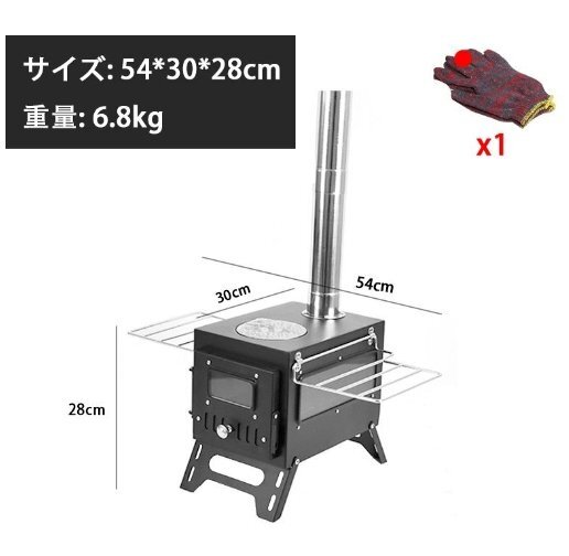セット内容:薪ストーブX1、煙突X5、手袋*1,炉内に2つの仕切り,丸いカバーピース 1 個,煙管ベース1個,小さなハンドル1個,炉フック1個,ねじ回し一。
