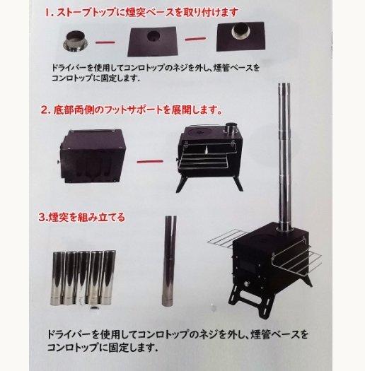 材質:薪ストーブ:ステンレス/煙突・グリル網:ステンレス
