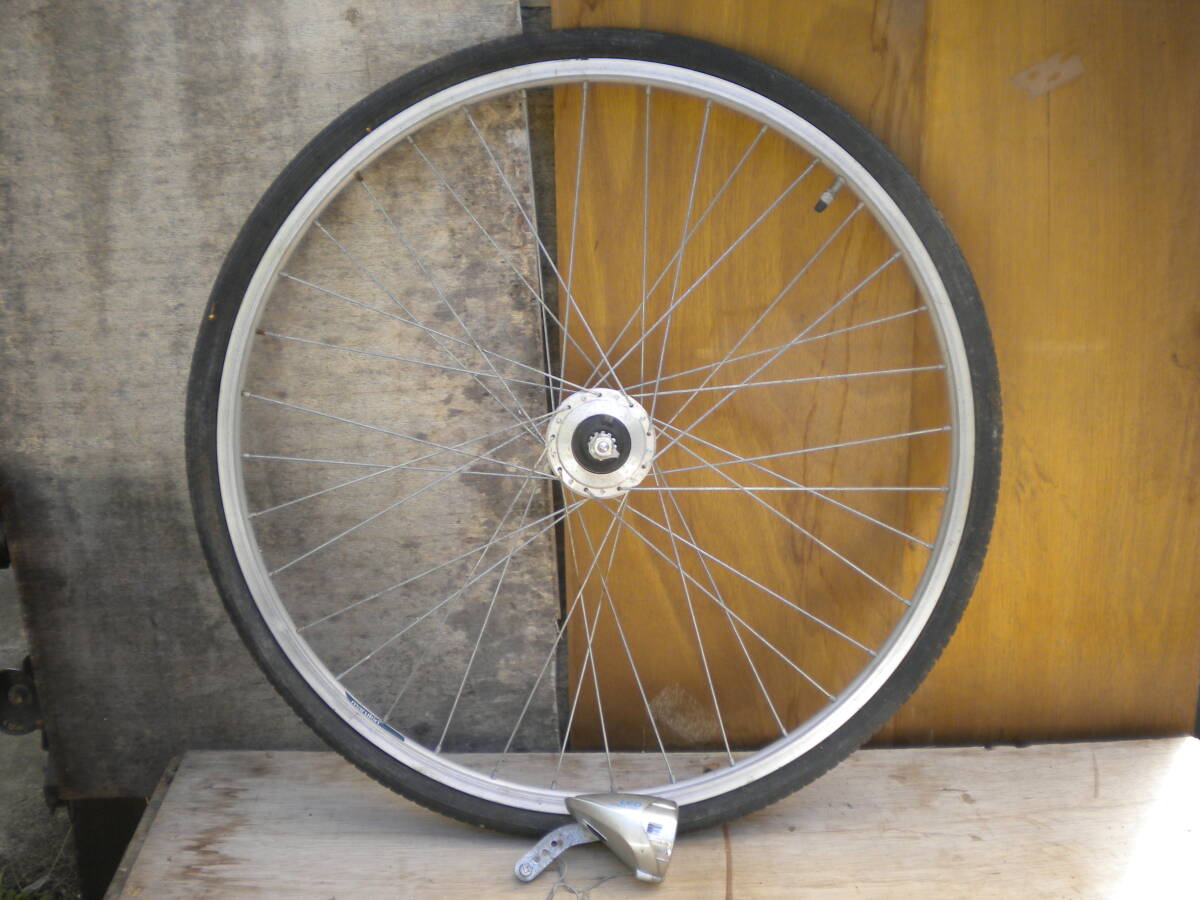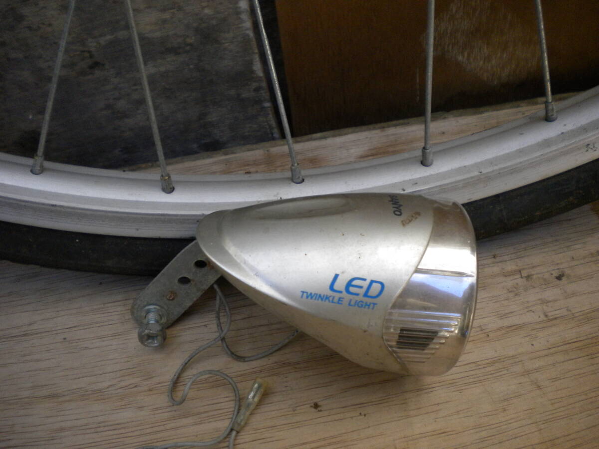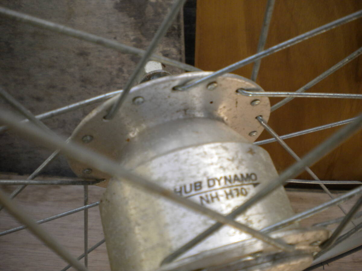 | ★商品説明★ | ★携帯からご覧の方及び発送料を聞く方がいらっしゃいますが送料等発送情報等下にありますので最後までよくお読み下さい。 ★評価の悪い方及び新規の方のご入札は1度質問コーナーよりご連絡下さい。 ご連絡の無い方のご入札はイタズラ・トラブル防止の為此方の判断で削除する場合がありますご了承下さい。 ★宅配便発送分及びゆうパックの場合必ずお読み下さい★ ※集荷・配達不可地域につきましては、予告無く変更となる可能性がございます。 お急ぎの方、遅延にご理解いただけない方は入札ご遠慮ください。ご落札の方には、 状況が判明次第ご連絡をさせていただきます。 大変ご迷惑をお掛けいたしますが、ご了承の程よろしくお願い申し上げます。 ★バイクや自転車・車の部品は消耗品です。完全クレーム対応致しません。保証等お考えの方はお店で整備された物を ご購入下さい。現状販売です。(現状販売の意味の判らない方はご遠慮下さい。) ★商品の詳細は文字では説明出来ない部分が有ります。ごくまれに、説明文に無い等アゲアシ取りをされる方 や神経質な方は、ご遠慮下さい。ご入札は良くお考えの上宜しくお願い致します。 ★時々多数本ご入用で同梱はと聞かれますが同一のホイール2本同梱でギリギリ160サイズで大丈夫ですが キズや絡まり等ご理解・ご了承頂ければご対応致します。 リアとフロント等異形の同梱は170サイズ以上になり ゆうパック又は宅配便着払いのみの発送になります。料金は後日お知らせ致します。 その他ホイールや数本は梱包してみないと判りません。 ご理解・ご了承下さい。 ★動作確認済み。ホイールはアルミです。 ★ライト切れの無いLEDライトです。 ★26×1 3/8。 ★ライト:サンヨー TWINKLE LIGHT LED。焼け・キズ・シミ・メッキ剥がれ有り。 ★ダイナモ:HUB DYNAMO NH-H70。スポークサビ有り。キズ・サビ有り。 ★タイヤ:山5分程度ですのですぐに交換する事も無いと思いますが早めの交換をお薦めします。(個人的見解) (サイドひび割れ有ります) ★取り付けのコツは締めすぎず緩すぎず車輪が違和感無く回る様に取り付ければ大丈夫です。 ゴリゴリ音があれば締め過ぎです、その時はライト点灯しません。 ★締めるコツですがナットに負荷がかかりきつくなった時1回又は2回程クッかクックッとご自身が負荷がかかる状態が だいたい10kg前後ぐらいの最良な締め付け具合です。 これを覚えると家電・タイヤ交換等回して締める物は大抵大丈夫です。(全般に保証している物では有りません) ★自転車・車バイクの様に不安が有る物は外れたら怖いと過剰に力が入り結構きつく締める場合が 心の中で知らず知らず生まれます。お気を付け下さい。 ★一番判る判断テストは上下逆さま(反対にして)で車輪を指で軽く回します。 その時ゴリゴリに締めますとカックンカックン・1マスメ~2マスメ間隔等に カカクンカカクンと車輪の負荷がかかり上手く回らない車輪が止まる状態が締めすぎです。 早く・強く回すと判りづらいです。ユックリとお願いします。 ★正常は指で軽く回しますと普通に違和感無くスーット車輪が回ります。 その際明るい内はライトのセンサー部分の本体後に携帯のカメラ部分のような窓が有りますのでここを押さえ光を センサーに関知させないで行うと点きます。 ★結構敏感で精密な部分ですのでビニールテープの黒かガムテープ・黒の布等で塞がないと関知して明るい内は 点灯しません。夜であればそのままで点灯します。 ★大事な事ですがホイール(ダイナモ)とライトの線がちゃんと繋がっていなければ付きませんお気お付け下さい。 ★LED以外稀にライトの中にある銅版にライトが接触してなければ球を交換しても付きませんので銅版を軽く曲げて 球に接触するようにして下さい。球は消耗品ですので切れている時は交換して下さい。対応は致しません。 ★テストはスチールのフロントフォークでしておりますアルミ等特殊な物は点かない可能性が有りますので ネット・自転車屋さん・判る方に聞いた上でご入札お願い致します。その際安易に落札され点灯しない等 一切返品・返金等対応致しませんのでご了承頂いた方のみ宜しくお願い致します。 ★ライトが付けれるある程度の車体なら、ポン付けで坂・雨等気にせず夜になれば楽々にライト点灯出来る機能です。 ★全体に年相応のサビ・キズ有ります。 ★発送は記載されているのみです。他の発送は不可になります。梱包代を含んだ金額になりますので、 ご理解頂いた方のみご入札下さい。実際の重量・サイズとは異なります。 ★割れ欠け見当たりませんが細かい部分は未チェックですので大事な部分はご質問で確認して下さい。 ★質問で確認のない欠け割れ部分は対処致しませんのでお気を付け下さい。 ★全体にキズ・シミ・サビ等有ります。部品取り・塗装等してお使い下さい。 ★評価の悪い方及び新規の方のご入札は1度質問コーナーよりご連絡下さい。 ご連絡の無い方のご