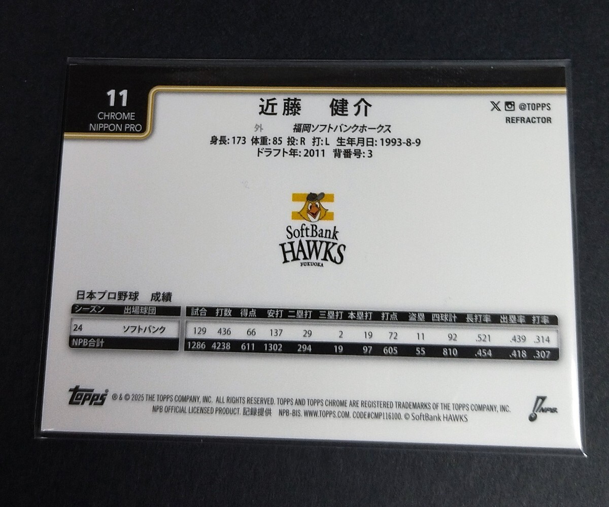 2025年topps chrome NPB 近藤健介(ソフトバンク) リフラクター! No,11。※カード特有の初期跡あり(画像3)Refractor