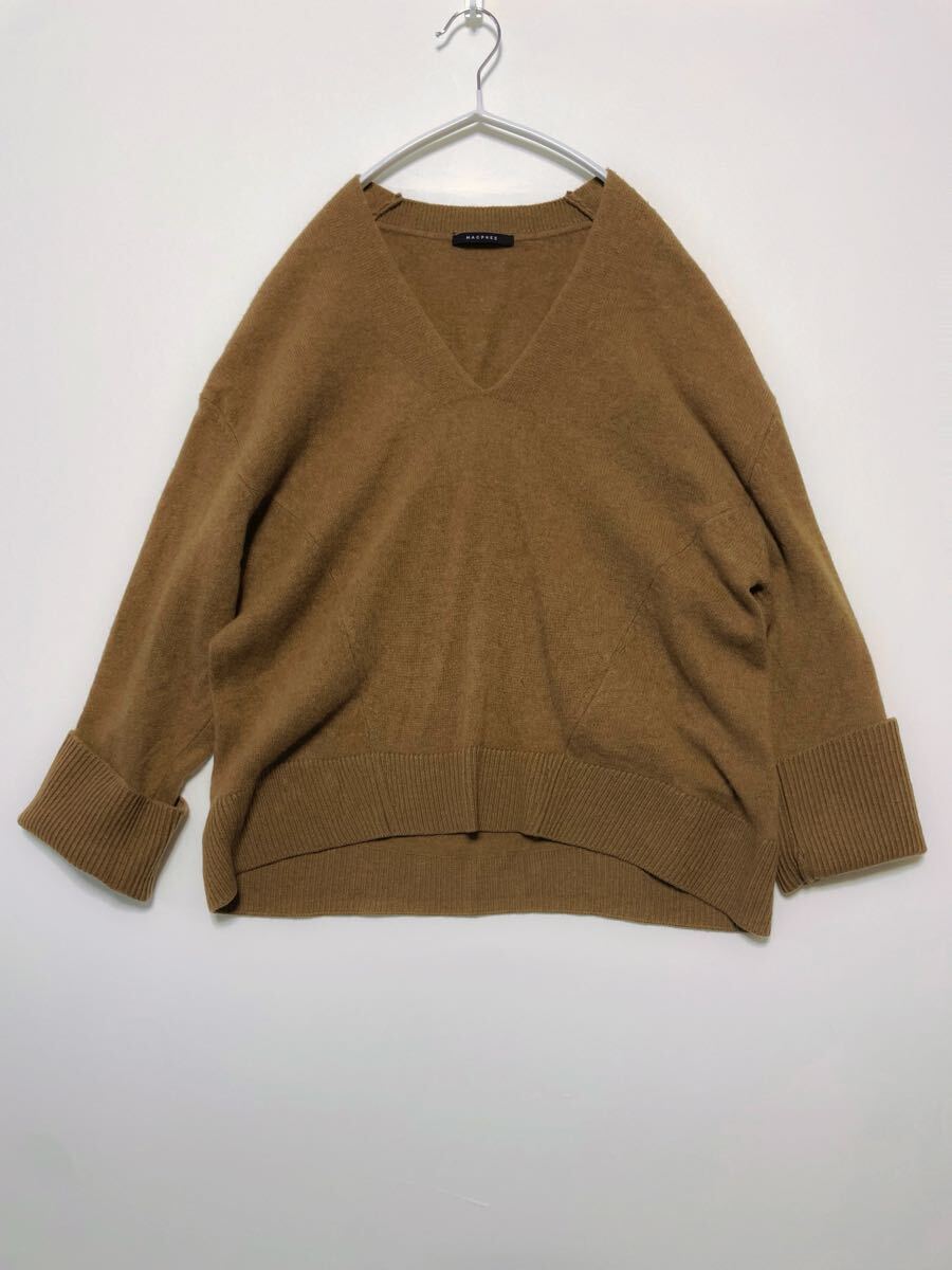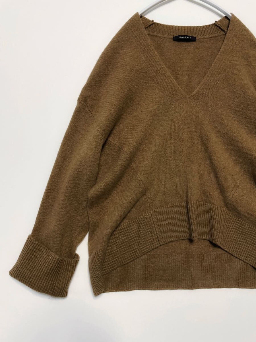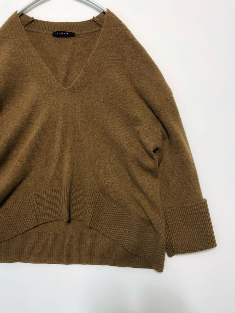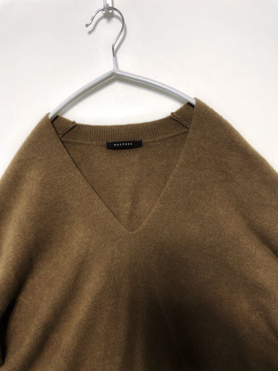 マカフィーふわふわゆったりVネックニットウールトップス ブラウン日本製