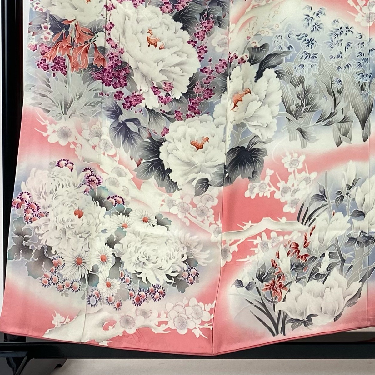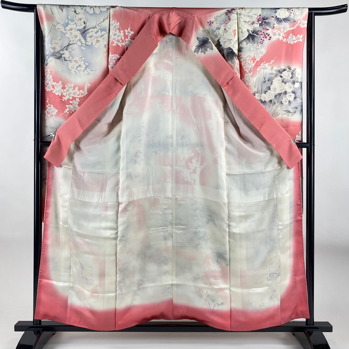 | 振袖 優品 落款 牡丹 梅 ぼかし ピンク 袷 身丈157 裄丈64.5 M 正絹 【中古】 |