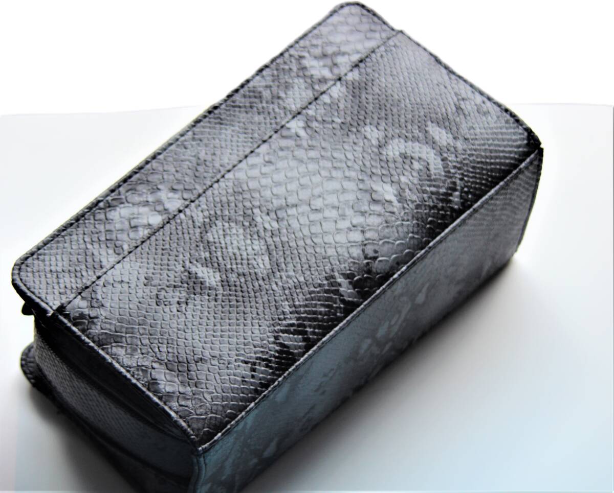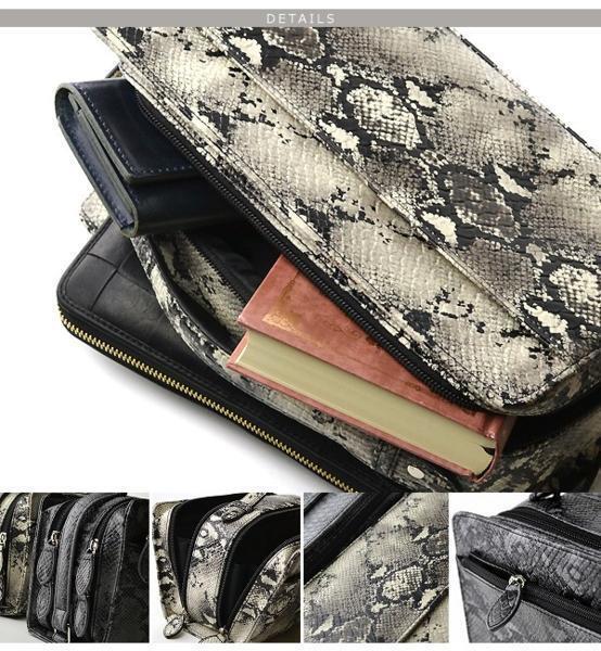 【1点限り赤字大特価】【送料込み】【期間限定】【新品】【税込み】リアルパイソン型押し ダブルファスナー スクエアセカンドバッグ GY