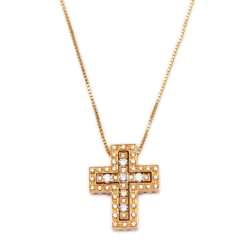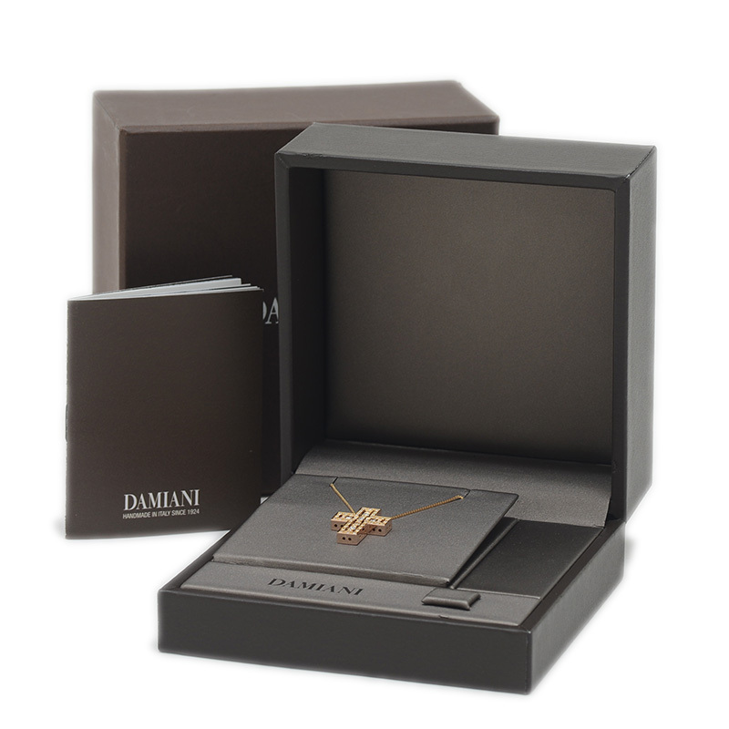 | 商品特徴 | 映画フィルムから着想を得た、フレームのような重なり合うデザインが特徴です。温かみのある18Kイエローゴールドにブリリアントカットダイヤモンドがセッティングされており、胸元で上品な輝きを放ちます。レトロでありながらモダンな印象で、時代を超えて愛されるダミアーニを代表する人気のジュエリーです。 |