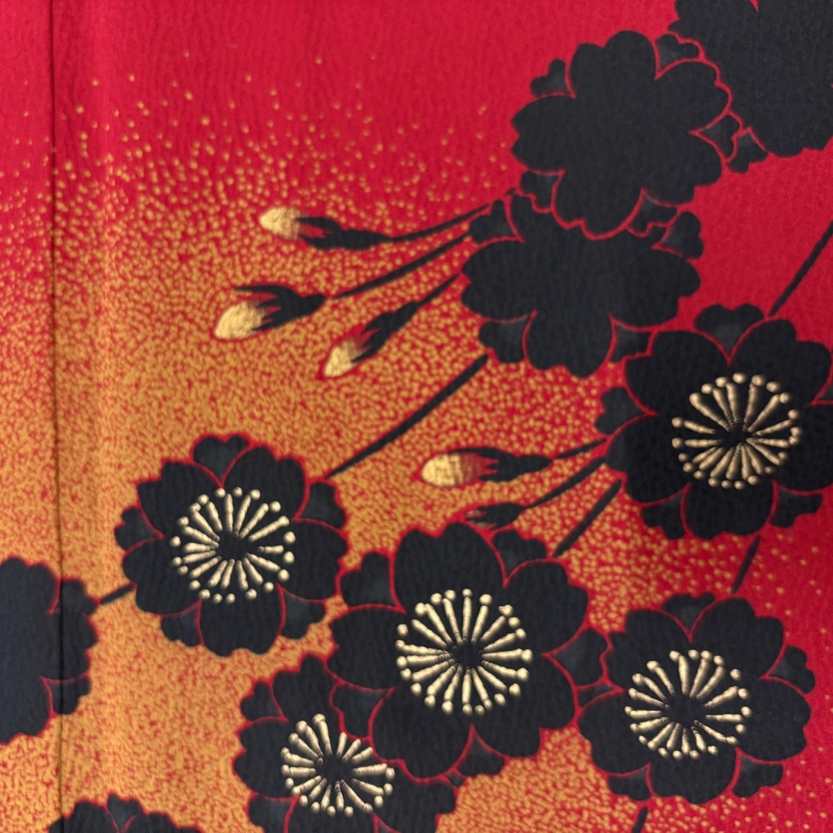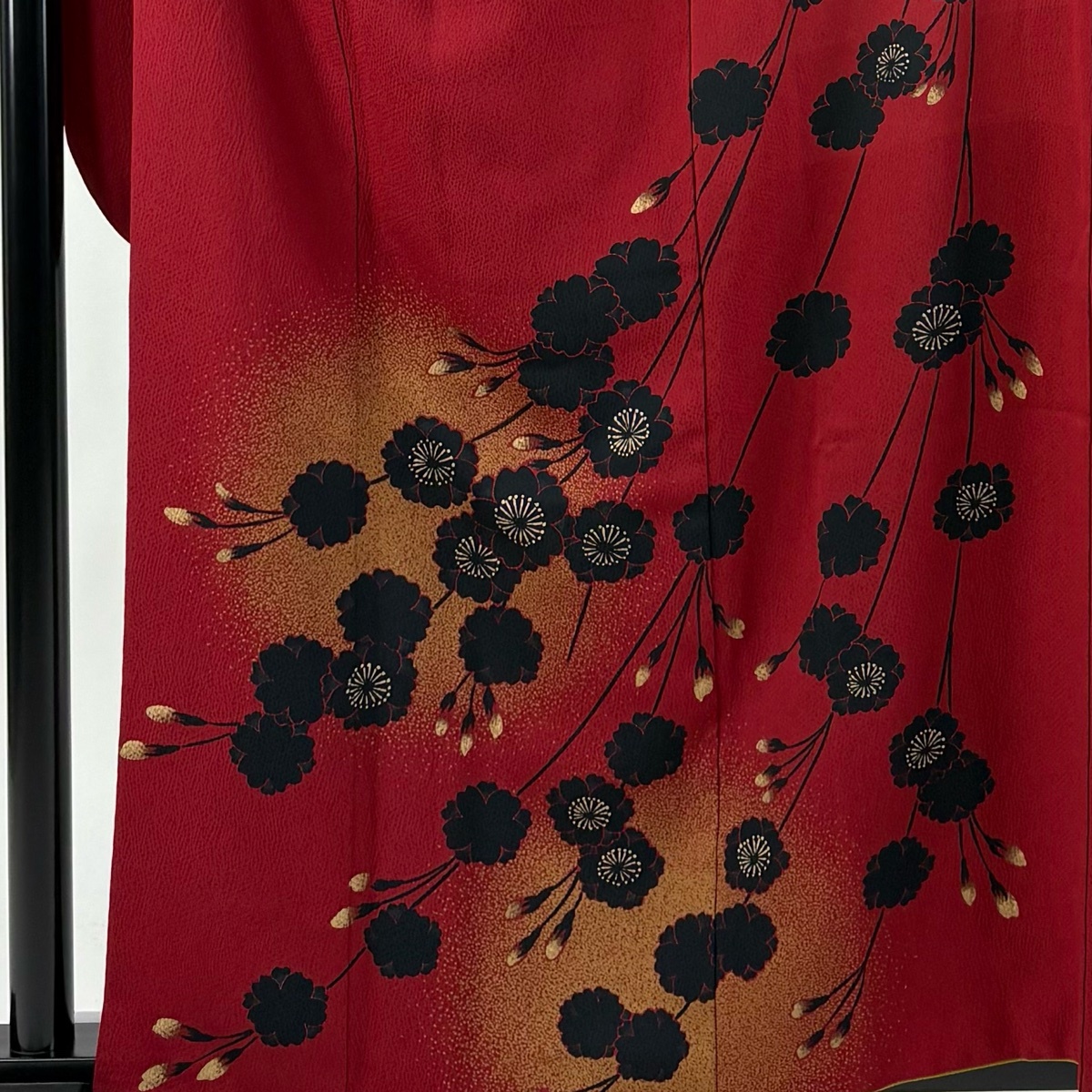 | 振袖 秀品 桜 金彩 縮緬 赤 袷 身丈159.5 裄丈66 M 正絹 【中古】 |