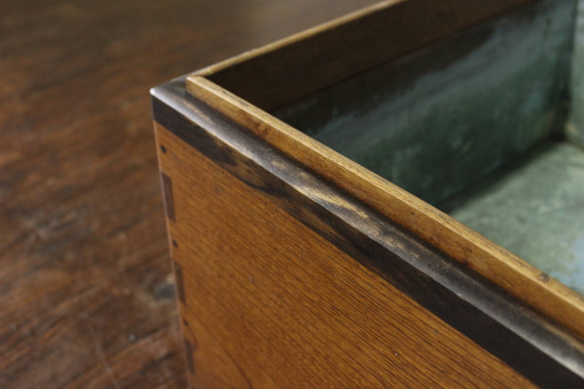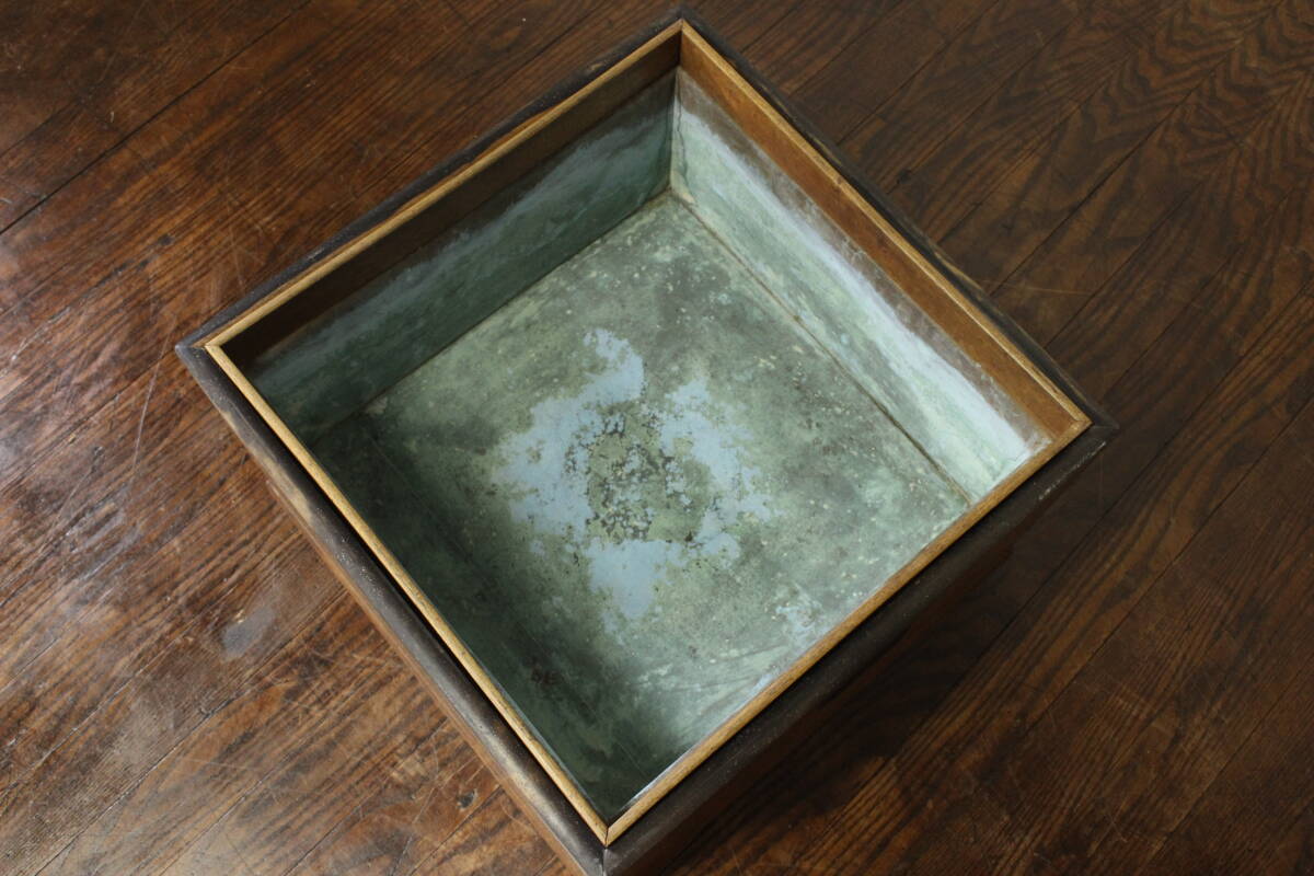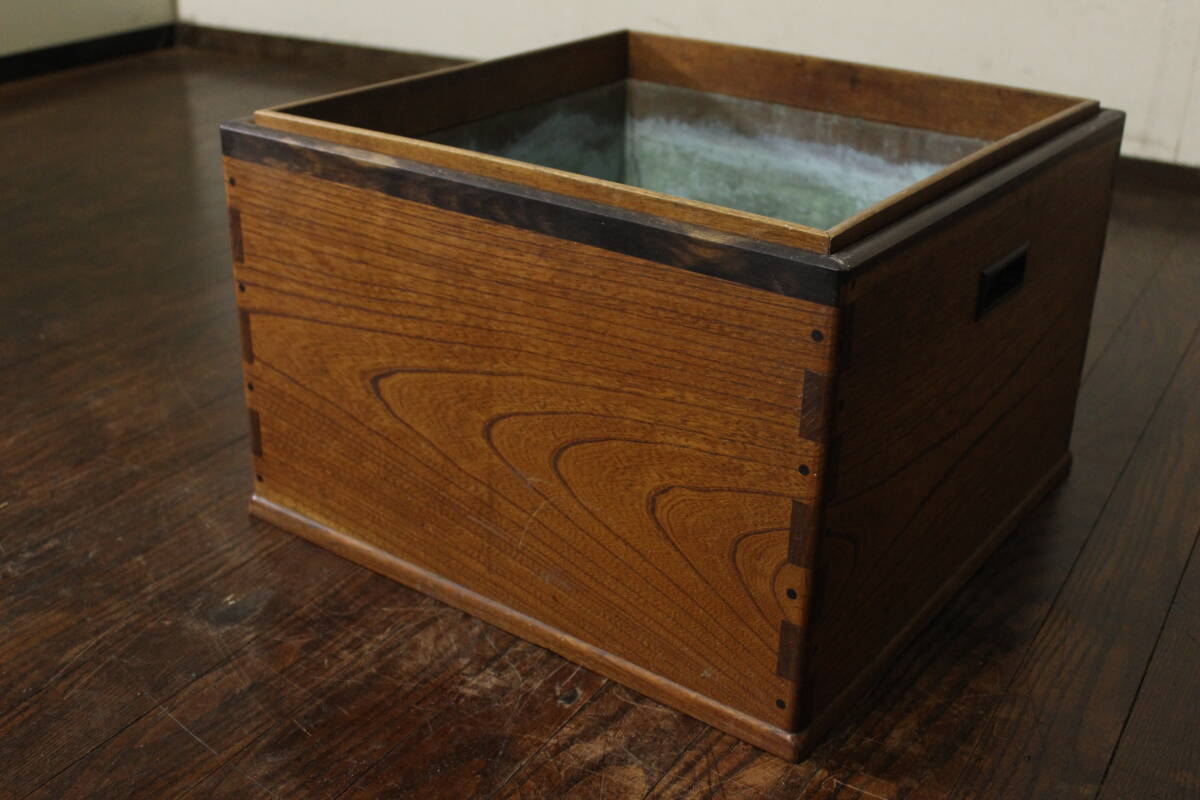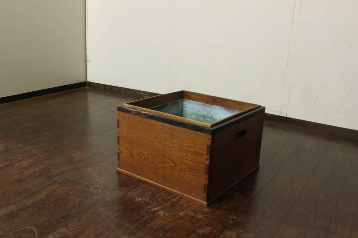 欅材の杢模様がとても良く、 実用は勿論、 アンティークアイテムとしてもオススメです。 落としは銅製です。 |