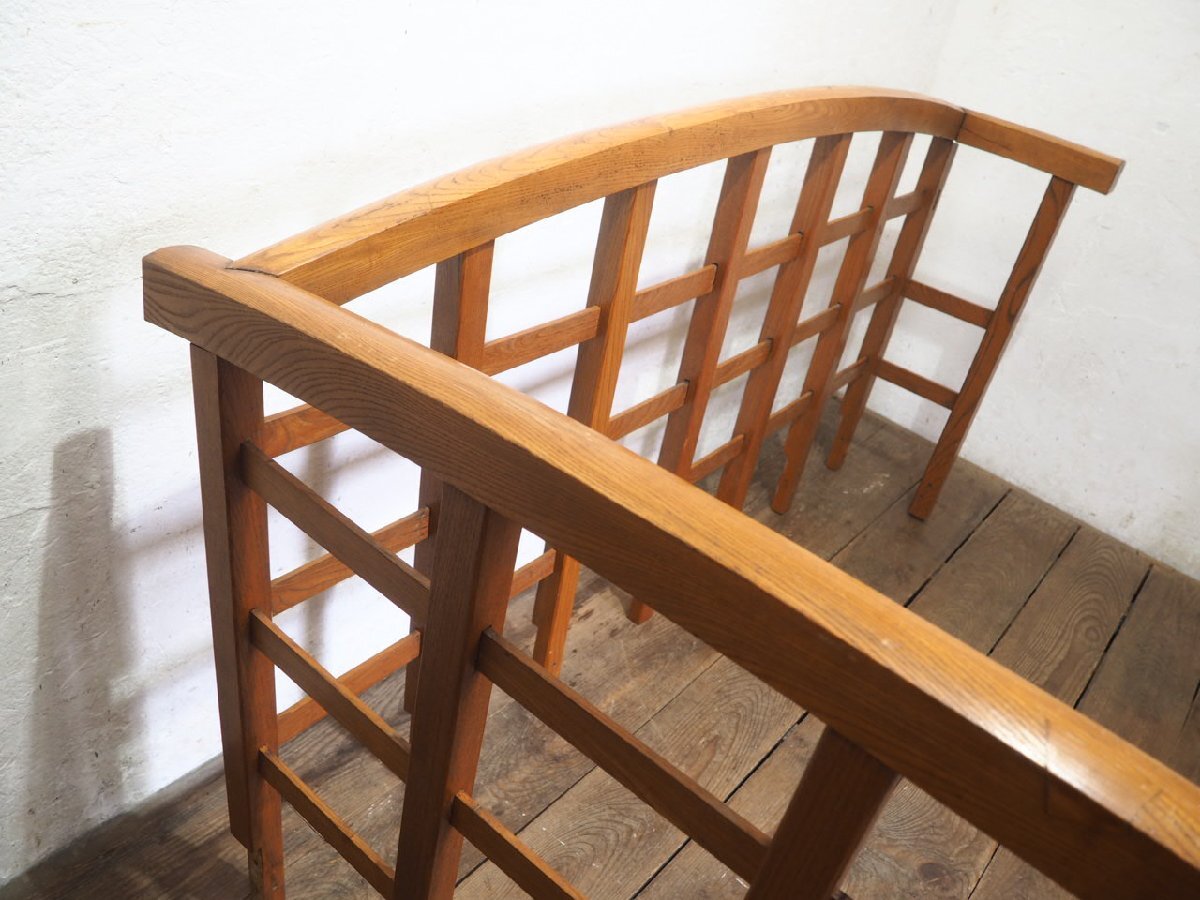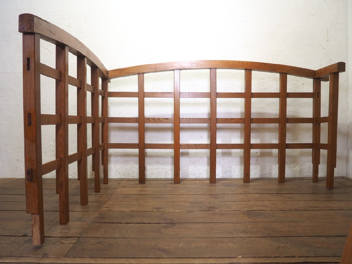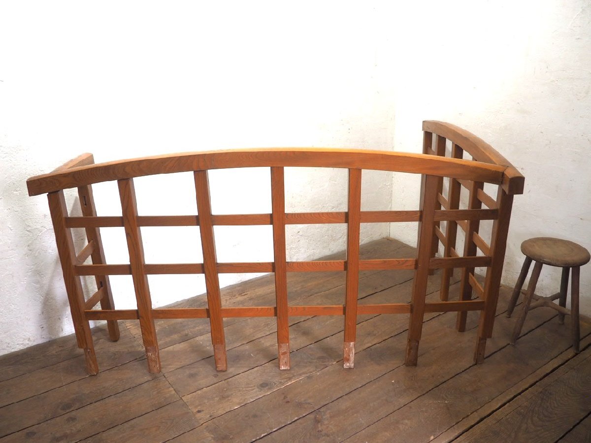 タ荷U0978◆H91cm×W171cm◆レトロな味わいの大きい木製の手摺り◆手すり ピラー 柱 柵 フェンス 建材 インテリア アンティークQ(ヤD)庭