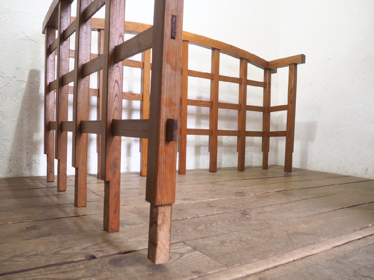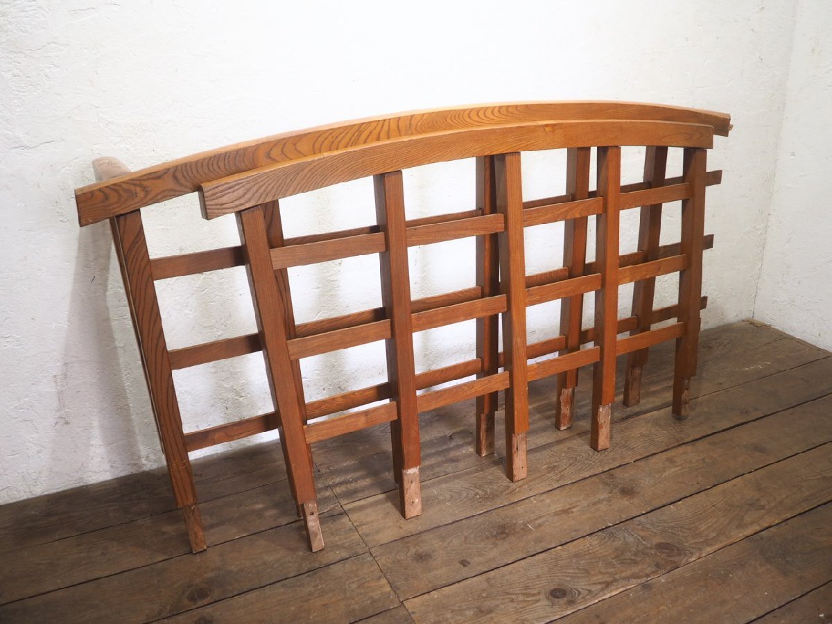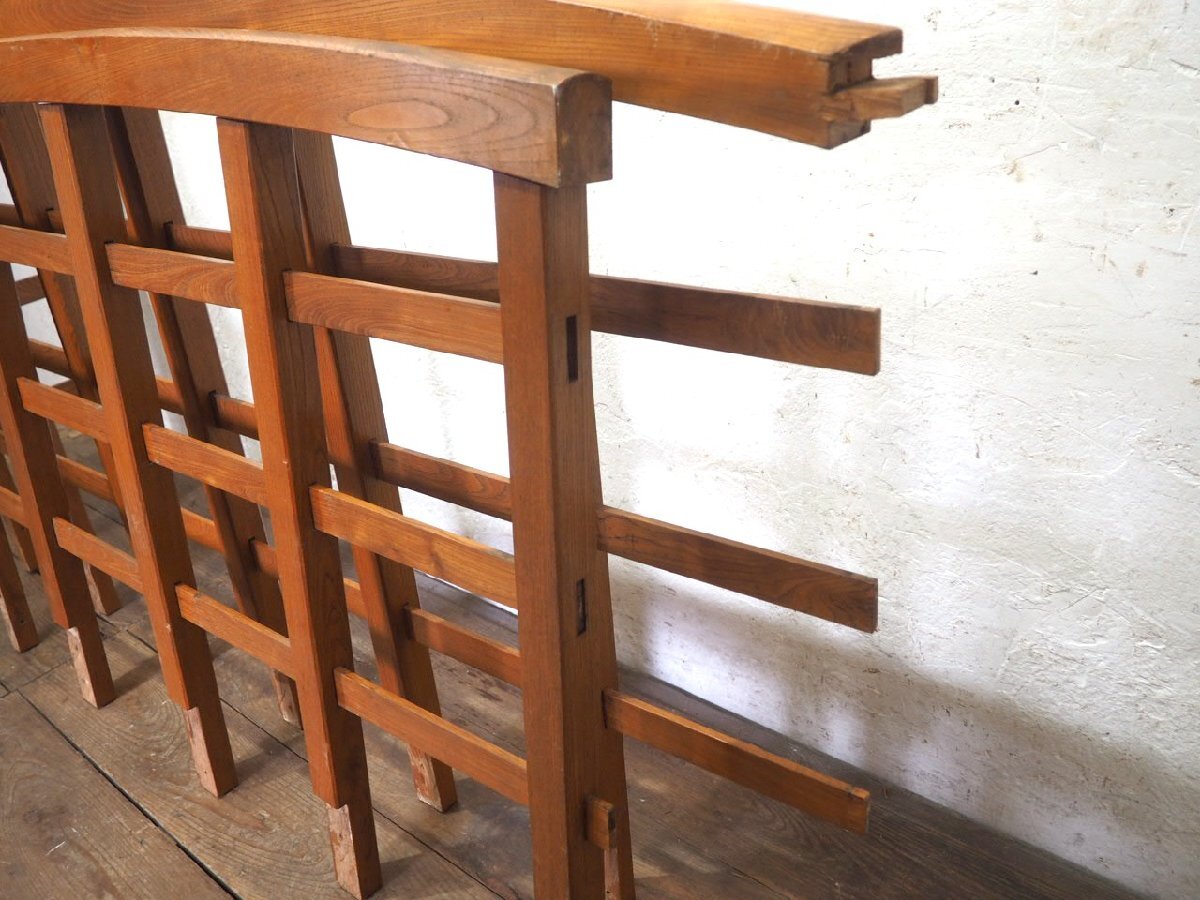 タ荷U0978◆H91cm×W171cm◆レトロな味わいの大きい木製の手摺り◆手すり ピラー 柱 柵 フェンス 建材 インテリア アンティークQ(ヤD)庭