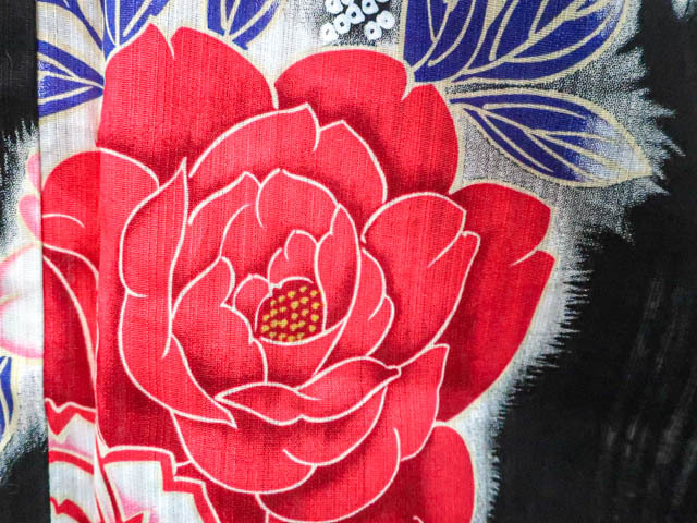 リサイクル商品ではございますが、大変良い状態のお品です。 地色は 黒です。 1枚目の画像が近いお色かと思われます。 素材は綿です。 |