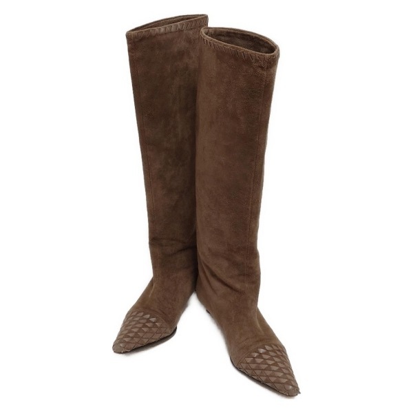 ボッテガヴェネタ BOTTEGA VENETA ロングブーツ 34 1/2 - レザー グレーベージュ レディース 靴
