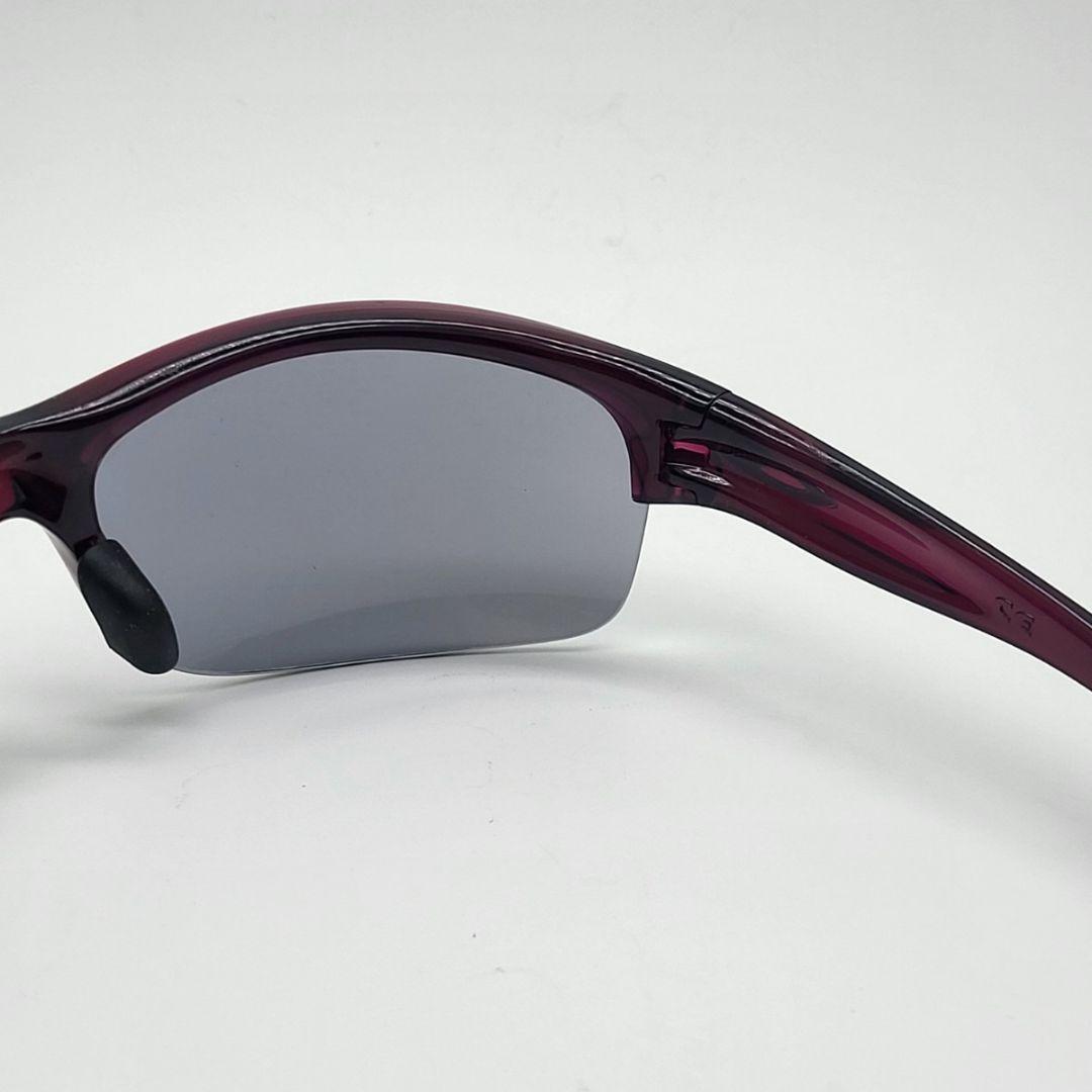 スタイリッシュなボルドー系フレームと、反射を抑えるグレーレンズが特徴のアイテムです。