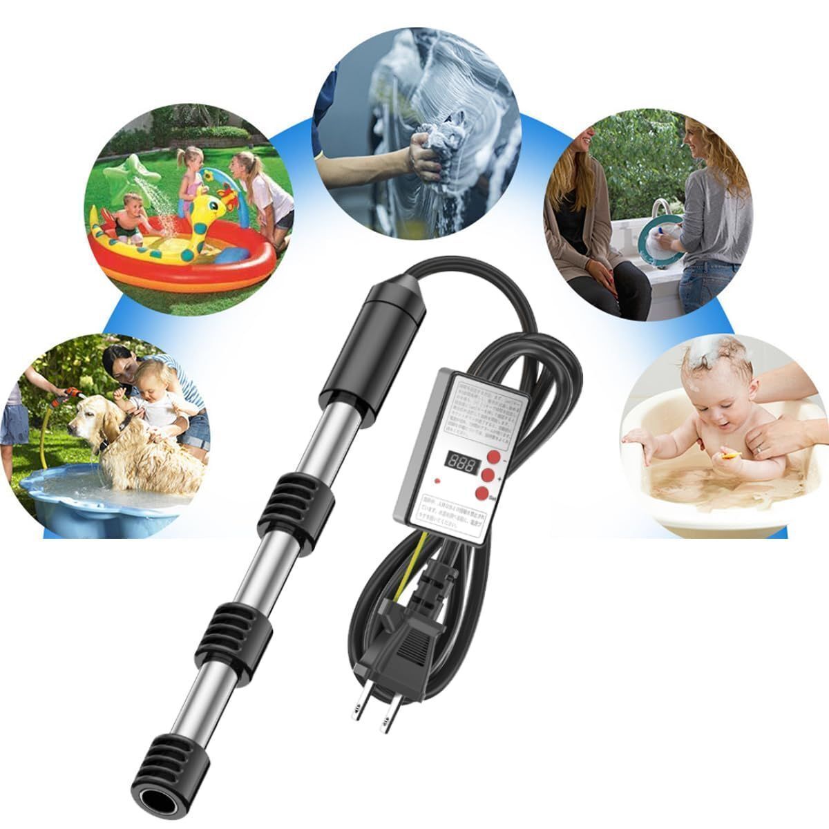 投げ込みヒーター 電気浸漬給湯器 温水器 プールヒーター 110V 電気ヒーター 70°自動電源オフ サーモスタット付 温度調節予約機能付 新品