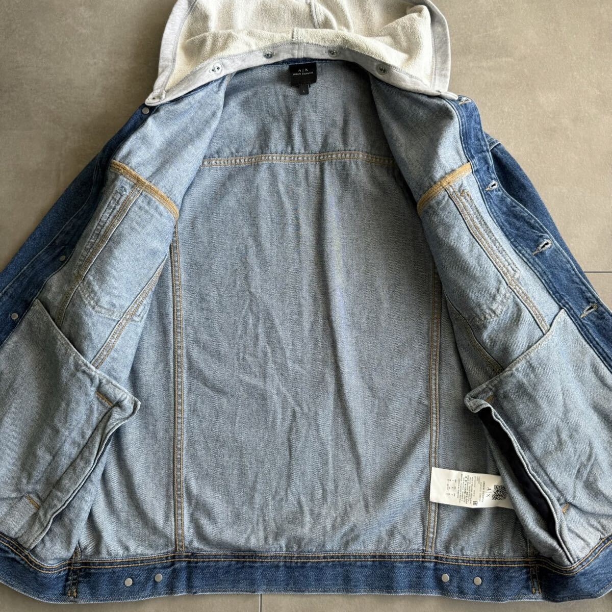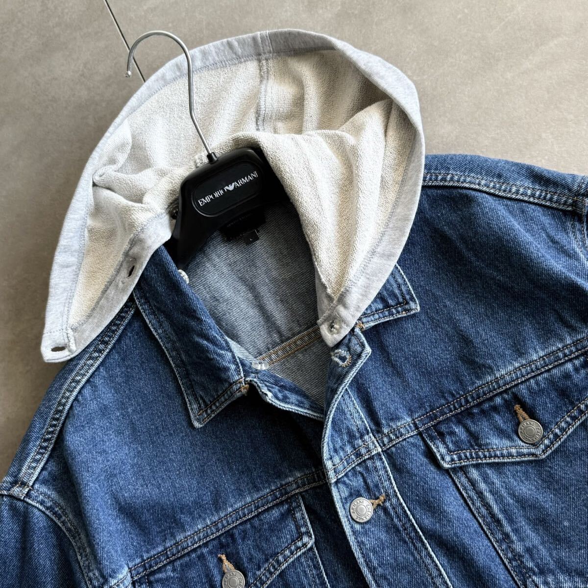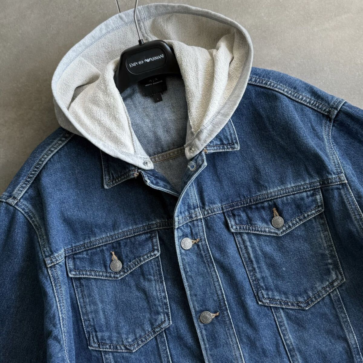 こちらはA|Xらしいモダンな感性が光るフード付きデニムジャケット。