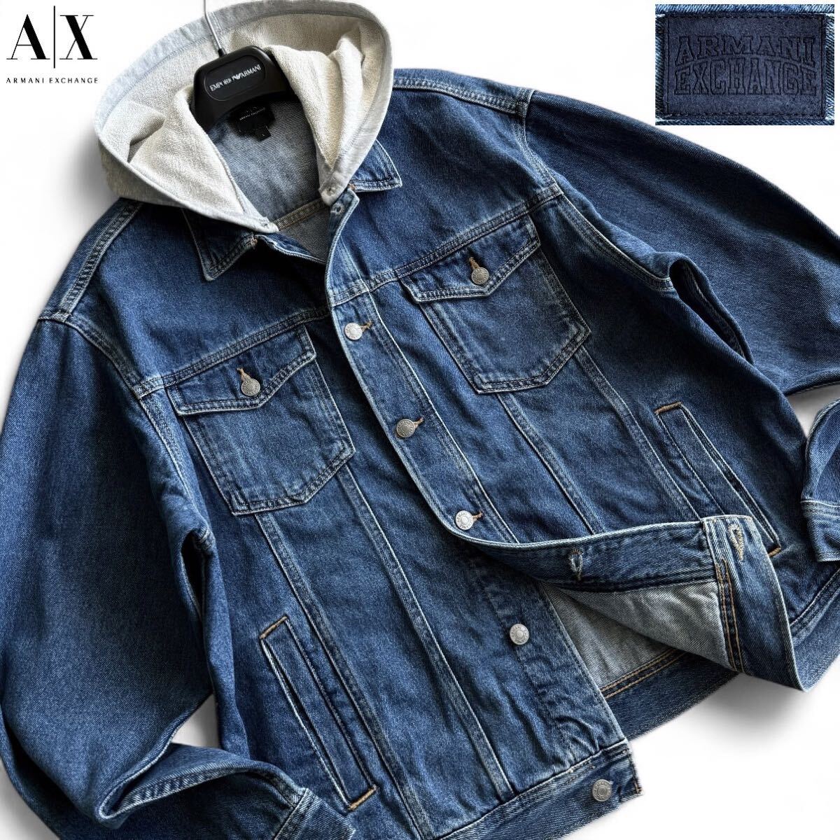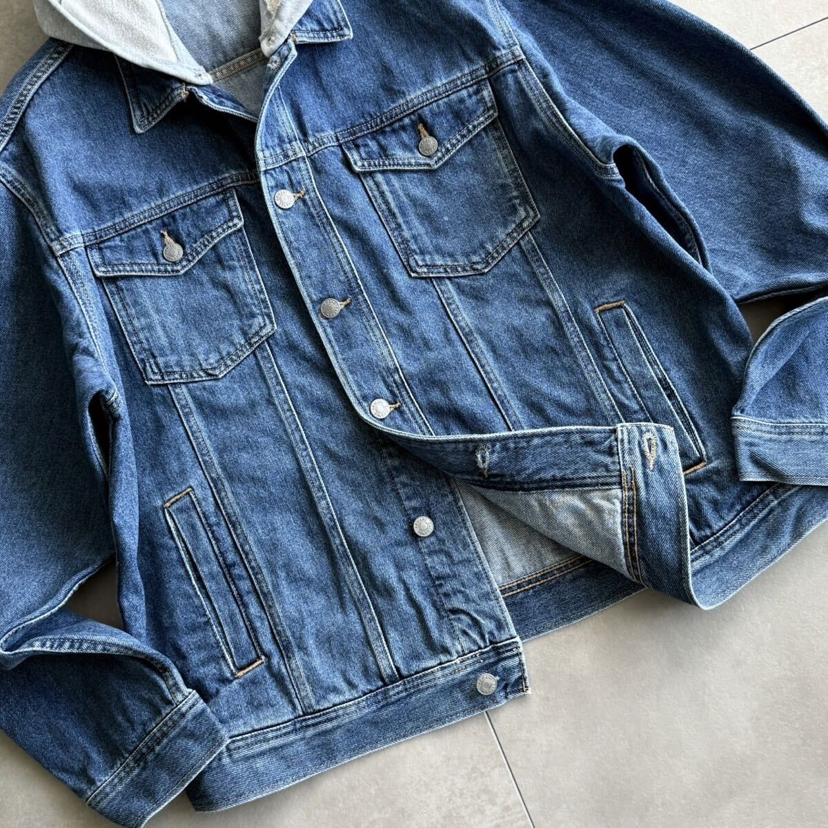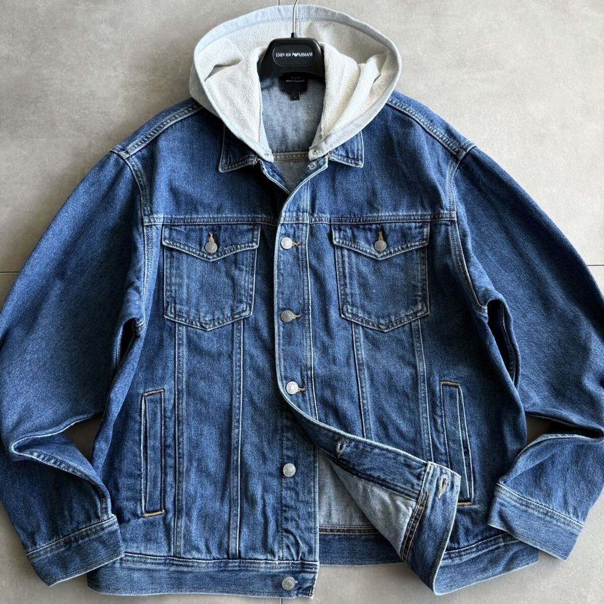 こちらはA|Xらしいモダンな感性が光るフード付きデニムジャケット。