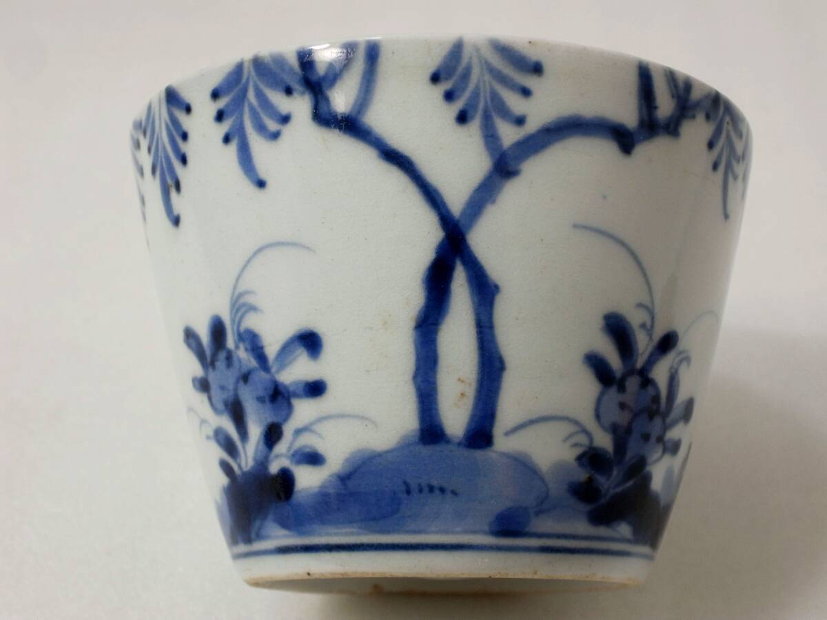 盛期古伊万里、染付け柳絵、大明年製銘、薄造り大型朝顔形、蕎麦猪口でございます。本品はゆうパック60サイズのご発送となります。 家庭保管の中古品で品で御座います。 ご理解の程ご入札下さい。 ★理由無きキャンセル 歴の有る方、新規の方の入札は一切お断りいたします。入札されても取り消し操作にて削除致しますので 入札順位が2番3番でも繰上げにて最高額入札者なる時が御座います。 コレクションにいかがですか? 発送はゆうパックのみとなります。 落札価格、単価に関わらず、定形外郵便、エクスパック、メール便等など一切お受けいたしません。 |