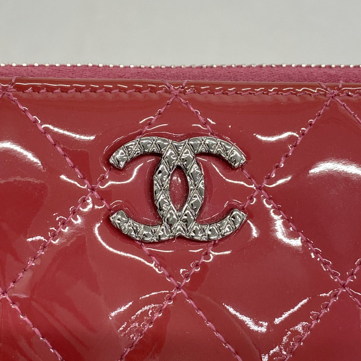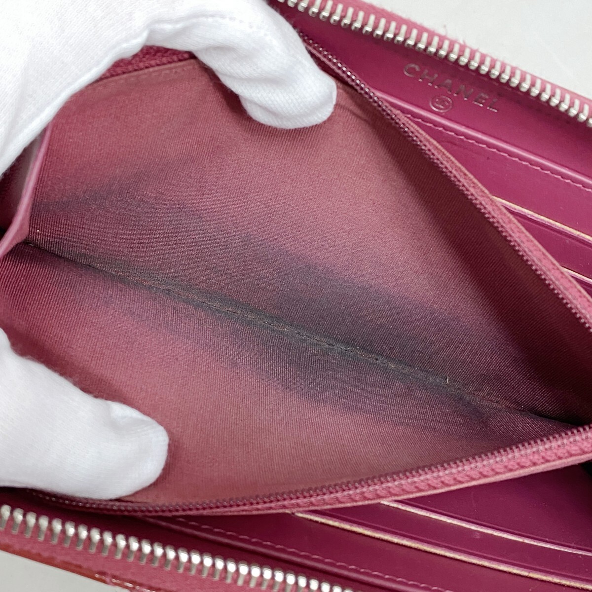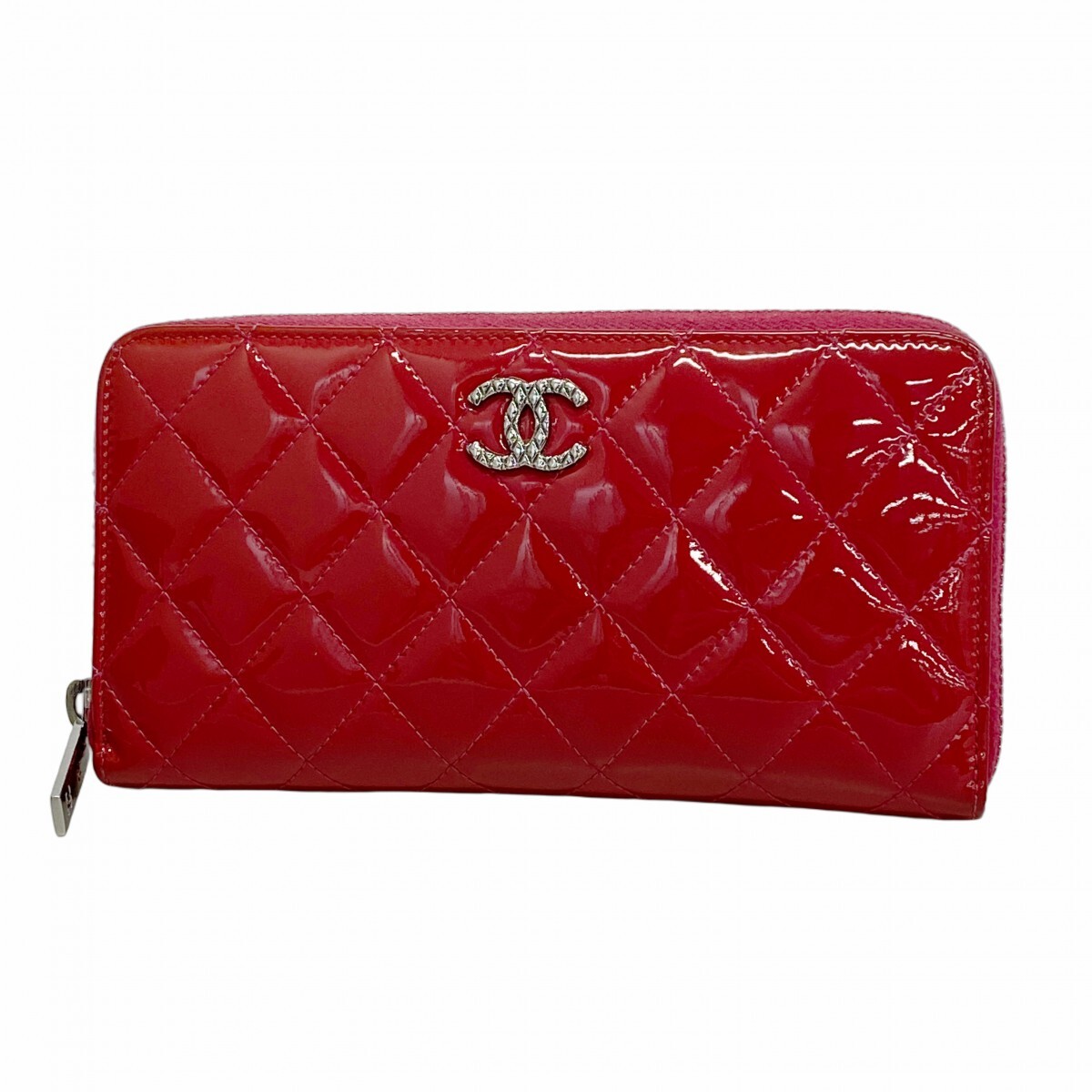 【5md5226】シャネル 長財布 ブリリアント パテントレザー レッド シルバー金具【中古】レディース