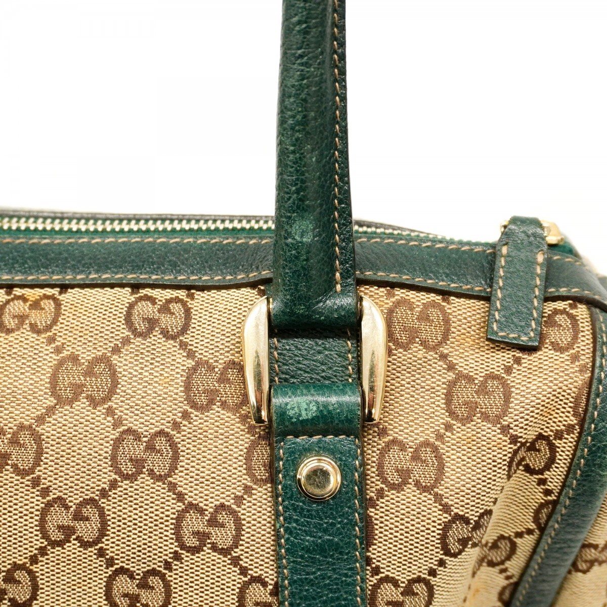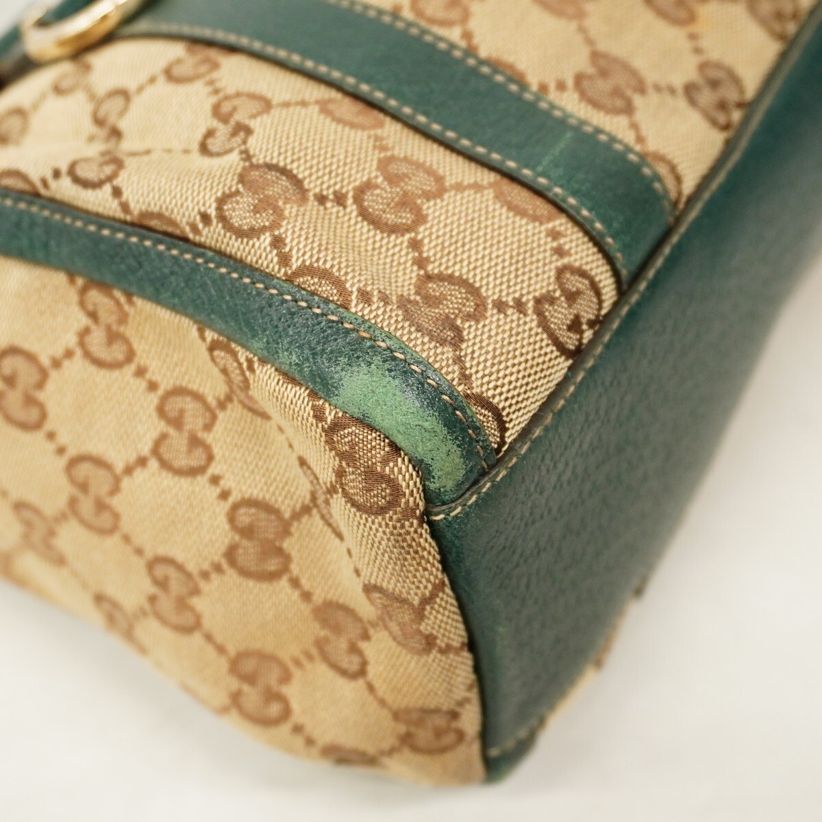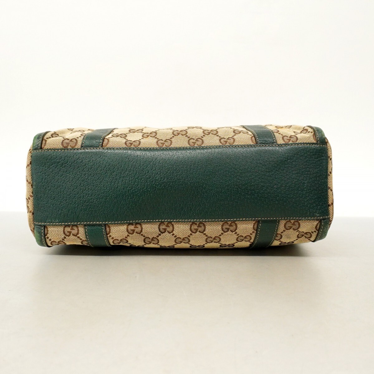 【5me5379】グッチ ハンドバッグ GGキャンバス アビー 130942 キャンバス ブラウン グリーン ゴールド金具【中古】レディース