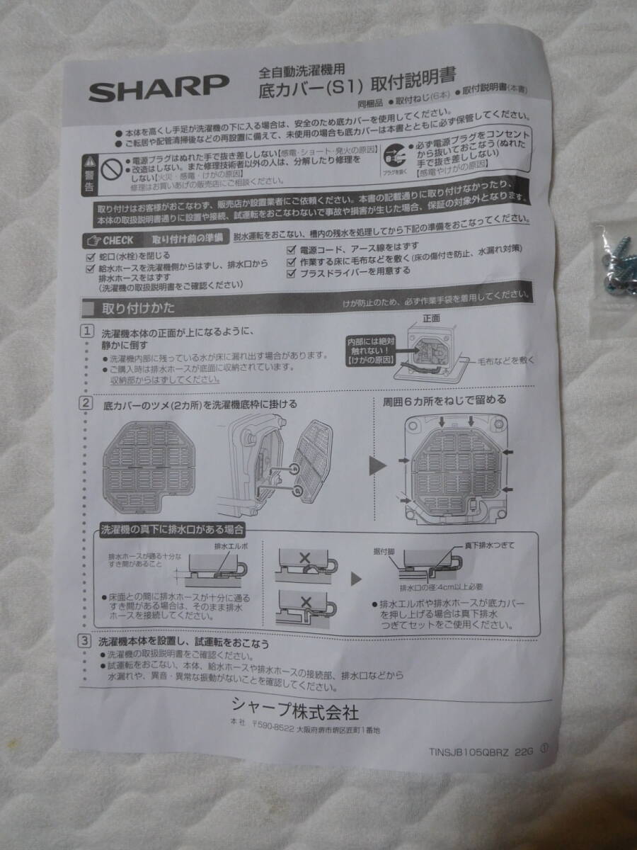 SHARP シャープ 全自動洗濯機用 底カバー(S1) 取り付けネジ6本付き 取扱説明書付き 未使用