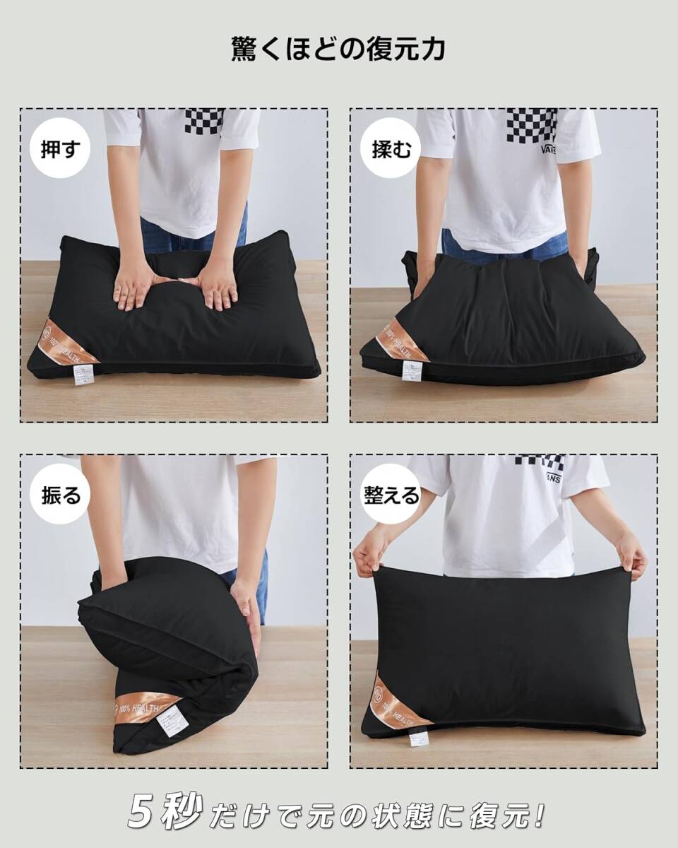 • 【立体高構造で頭から首までしっかりサポート】 羽毛のようなふんわり感と高反発性を両立!頭と首を優しく包み込み、仰向け・横向き・うつ伏せ、どんな寝姿勢でも快適な姿勢をキープ。寝返りもスムーズで一晩中ぐっすり眠れる高級ホテル仕様の寝心地を実現。